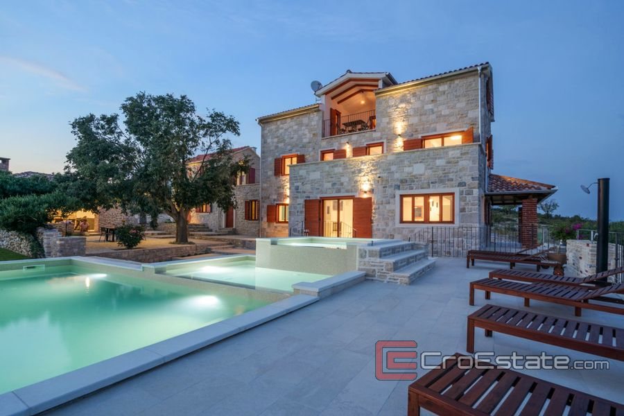 Nybygd luksusvilla i stein som ligger på en tomt på 1650m2 i et rolig område av Zadar innlandet omgitt av uberørt natur.