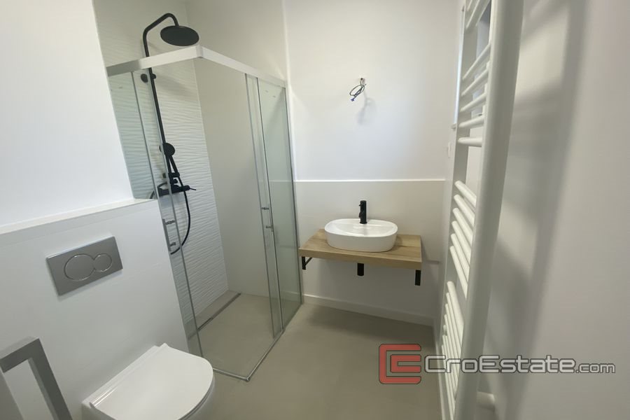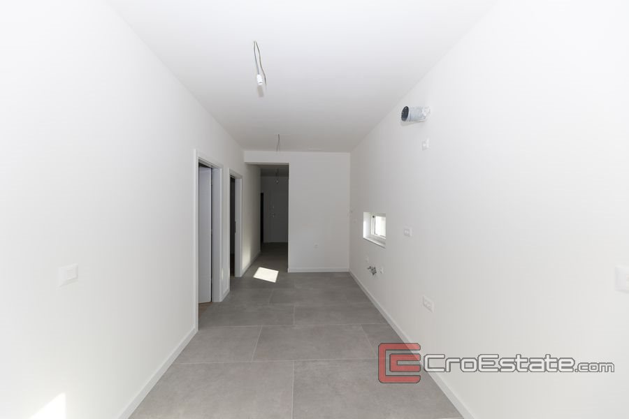 Leiligheten på 115 m2 ligger i første etasje i et moderne designet boligbygg bygget med utmerkede materialer. Bygget ligger på et tilgjengelig sted 7 km fra sentrum av Zadar, og har en adkomstvei på begge sider av bygget. På grunn av den rimelige mikrobeliggenheten og den nøye utformingen, er leiligheten en ideell løsning for turisme eller for å bo på grunn av nærheten til stranden og sentrum av Zadar.