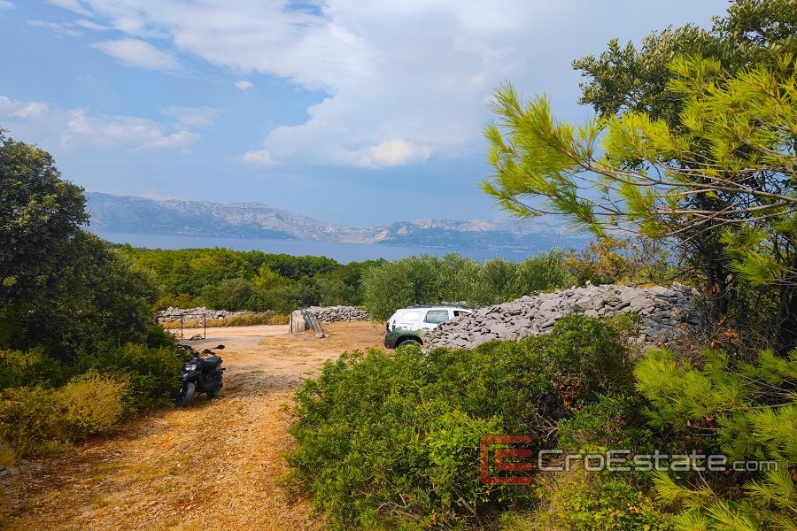 Jordbruksmark med havsutsikt. Marken ligger 500 m från havet och centrum av en liten fiskeby på ön Brač. Marken har en egen bred tillfartsväg samt annan infrastruktur, vatten och el finns alldeles intill.