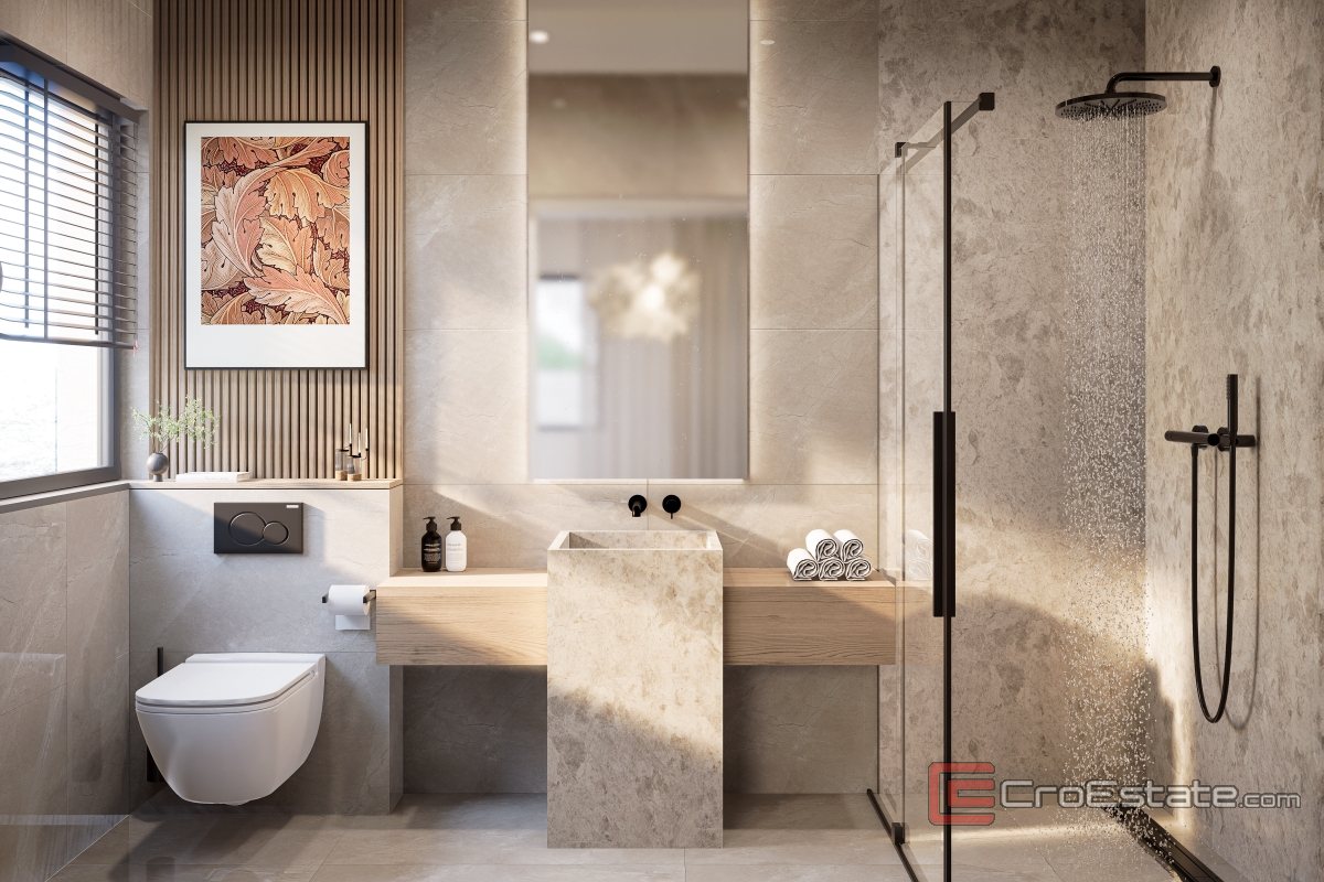 Bei der Bauausführung wurde Wert auf Qualität gelegt: Fliesen und Sanitärkeramik von hohem Standard, Klimaanlage in jedem Zimmer, Sicherheitstüren und die Möglichkeit der Endgestaltung in Zusammenarbeit mit erfahrenen Innenarchitekten.