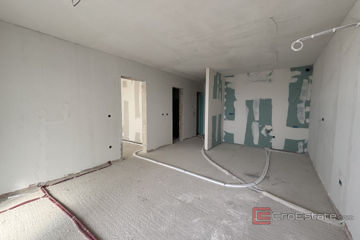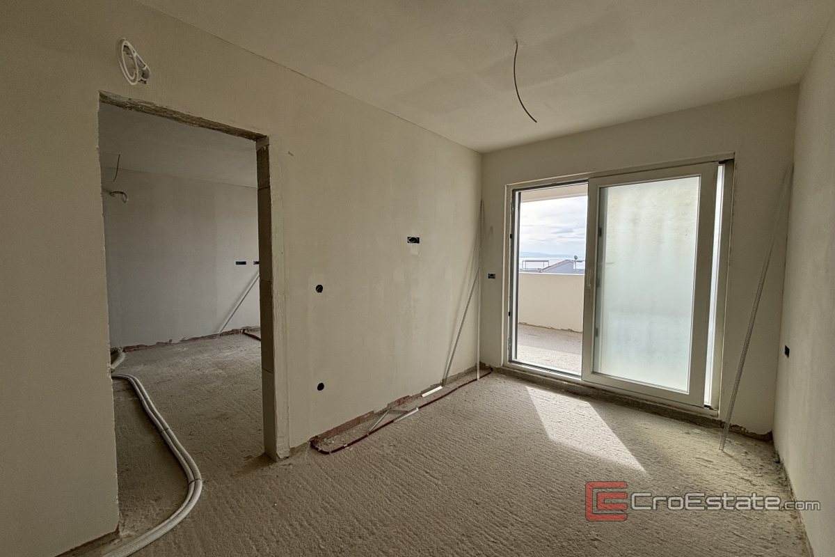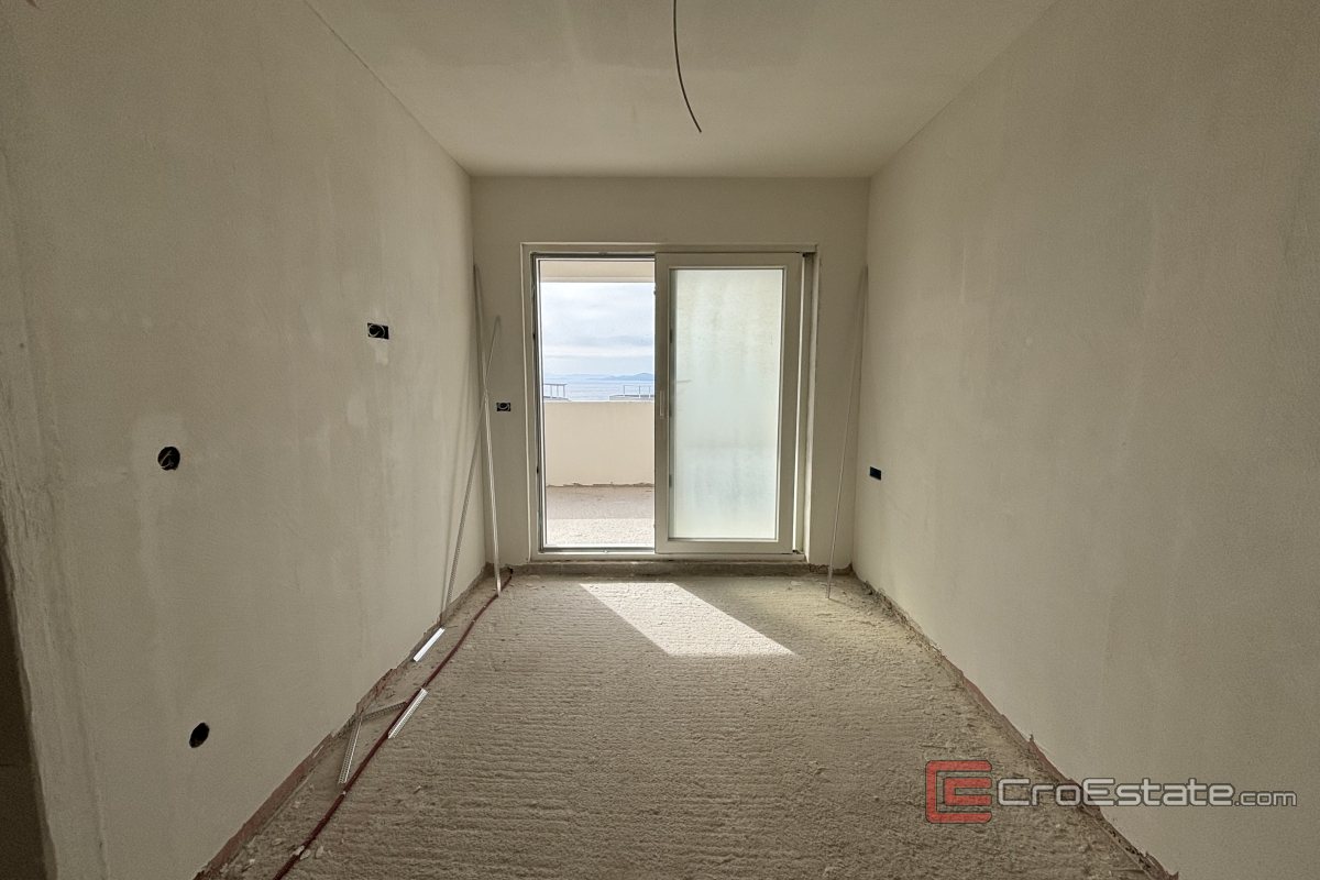 En bekväm tvårumslägenhet med havsutsikt säljs på ön Čiovo, i en av de mest attraktiva turistorterna i området. Det finns en parkeringsplats i garage i byggnadens källare, och lägenheten ligger på första våningen i ett litet bostadshus med totalt 15 lägenheter.