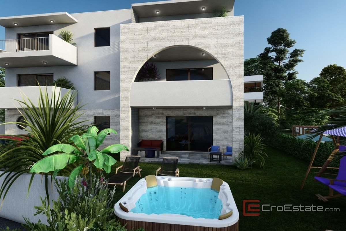 En modern och elegant lägenhet i ett nytt bostadshus på ön Čiovo, perfekt beläget bara några steg från det glittrande Adriatiska havet.