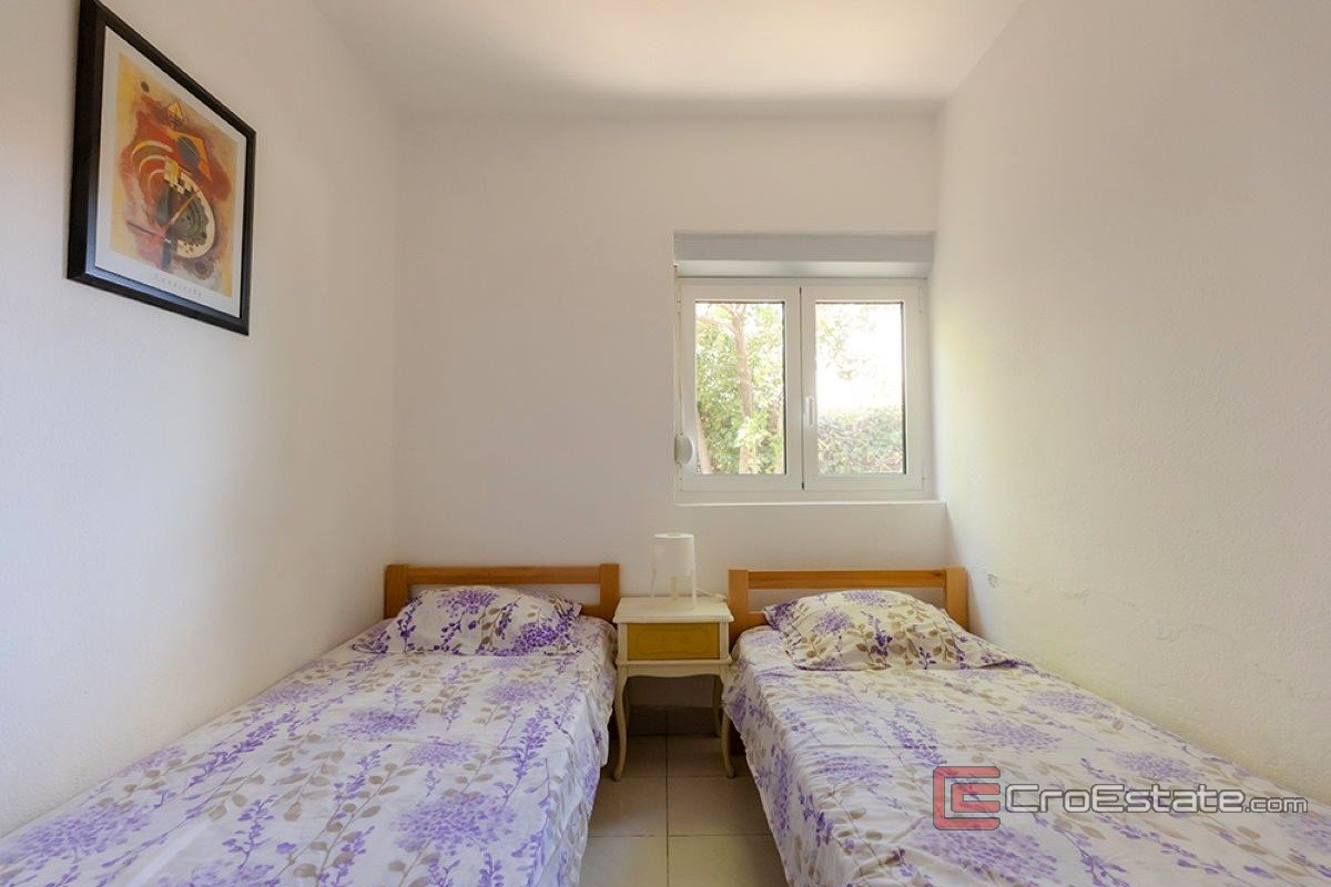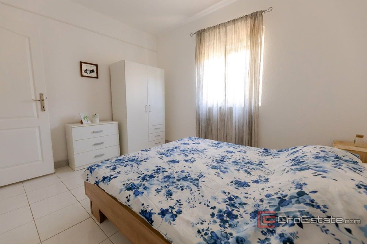 Beläget i ett extremt attraktivt läge i första raden mot havet nära Trogir, erbjuder detta charmiga semesterhus fri utsikt över Kastelabukten och exceptionell investeringspotential.