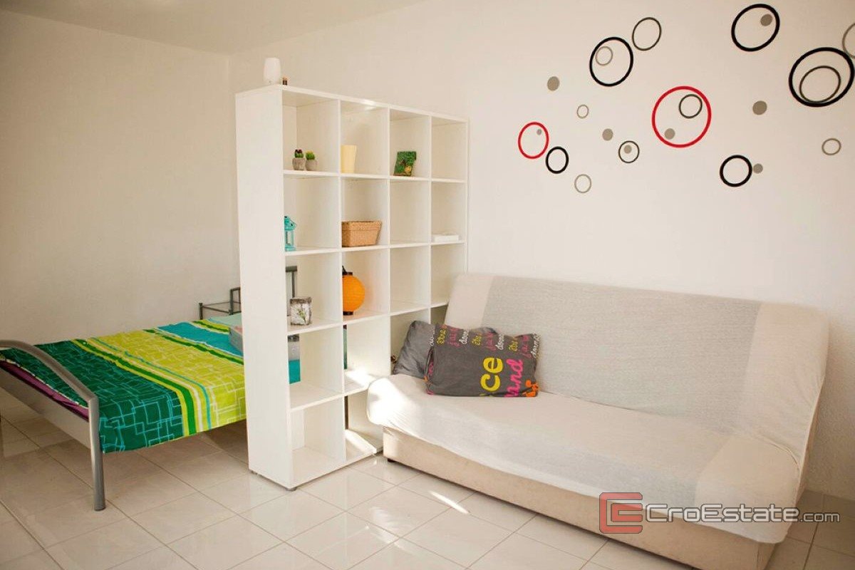 Huset är för närvarande organiserat som två oberoende bostadsenheter, vilket möjliggör omedelbar flexibilitet för korttidsuthyrning eller dubbel användning. Bottenvåningen består av en tvårumslägenhet med badrum, kök, vardagsrum och terrass som vetter mot en lugn, privat trädgård, lämplig för familjevistelser eller längre hyresgäster. På första våningen finns en studiolägenhet med pentry och badrum, med en rymlig terrass på cirka 30 m² med fri utsikt över havet. Stranden ligger bara några steg från entrén, vilket ytterligare ökar fastighetens attraktivitet.
