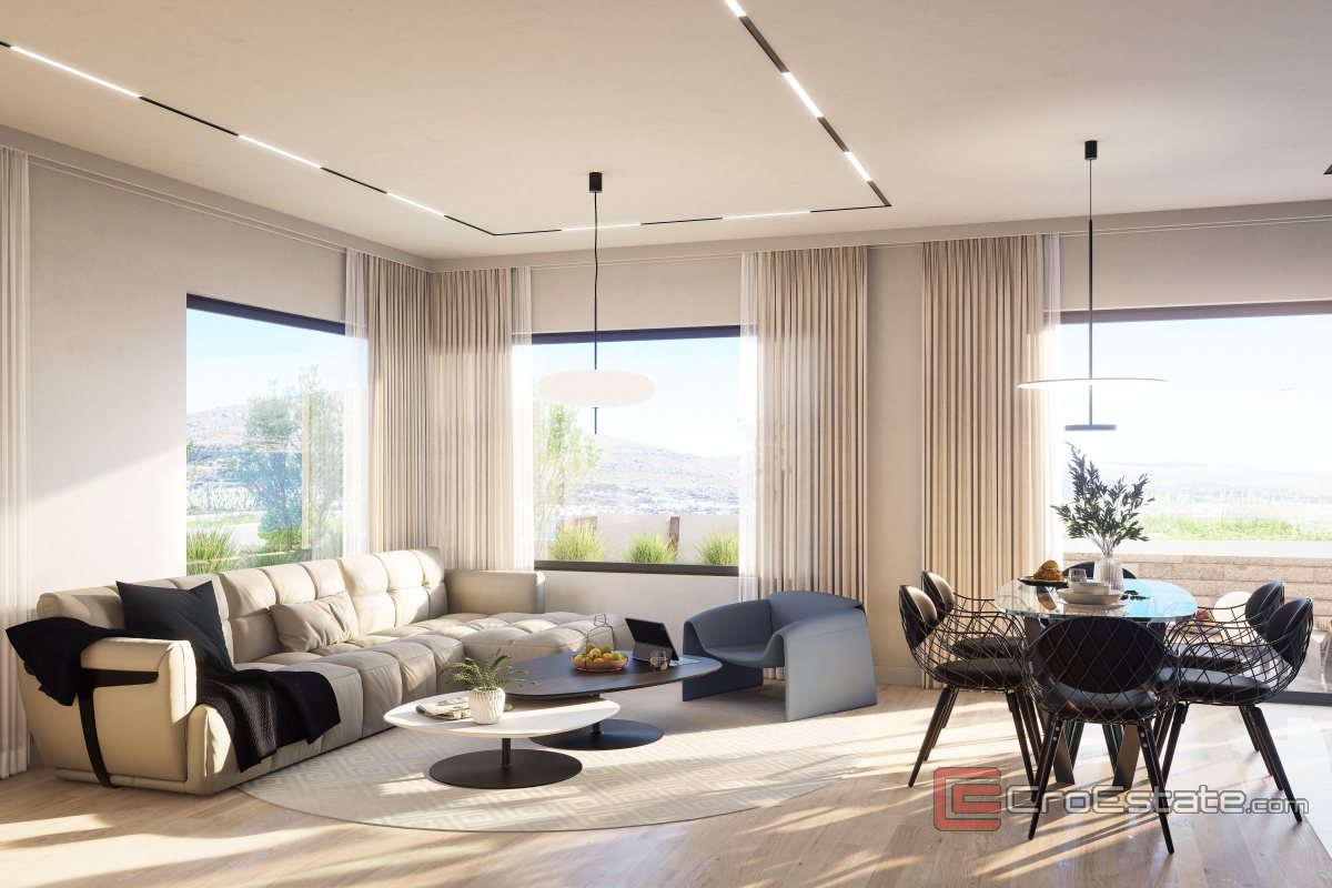Diese Luxuswohnung mit Terrasse im Erdgeschoss in Okrug Donji in zweiter Meeresreihe verbindet die Eleganz modernen Wohnens mit entspannter mediterraner Atmosphäre. Die Wohnung verfügt über 93,55 m² Wohnfläche. Für zusätzliche Exklusivität sorgt der 36,14 m² große Außenbereich, der sich perfekt zum Genießen des Meeresblicks eignet.