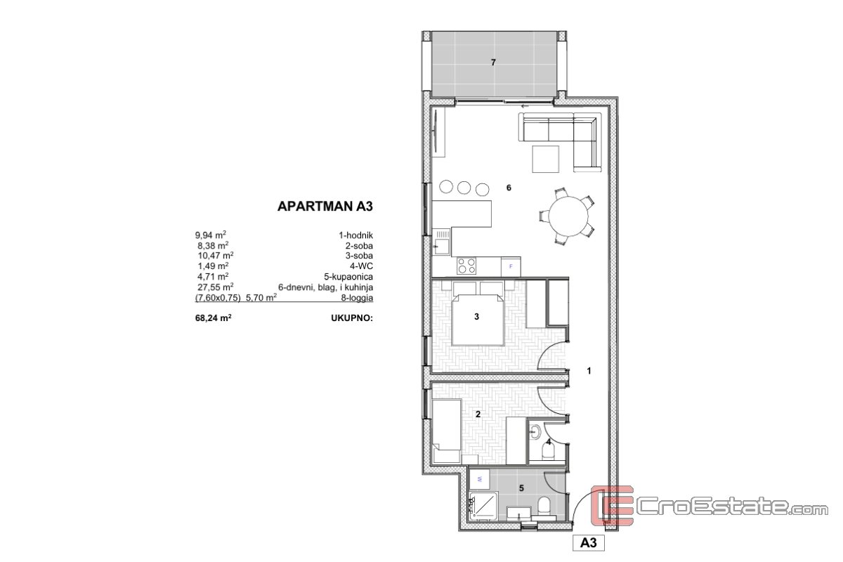 In ruhiger Lage auf der Insel Čiovo, innerhalb einer Anlage mit Neubauten, befindet sich diese funktionale und moderne Wohnung mit angrenzendem Außenbereich – ideal für Urlaub oder als Kapitalanlage. Alle wichtigen Einrichtungen sind bequem zu erreichen, und der Flughafen ist nur wenige Autominuten entfernt, was die Attraktivität dieser Immobilie zusätzlich erhöht. Die Wohnung mit einer Wohnfläche von 62,54 m² ist auf optimale Raumausnutzung und höchsten Wohnkomfort ausgelegt. Die Wohnung besteht aus einem Flur, Badezimmer, WC, zwei Schlafzimmern und einem offenen Wohnbereich, der Küche, Esszimmer und Wohnzimmer vereint.