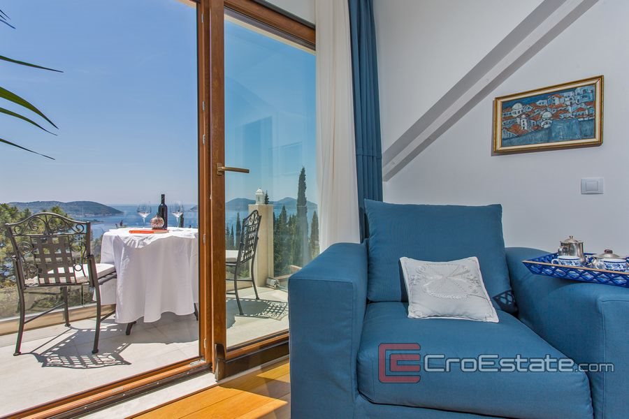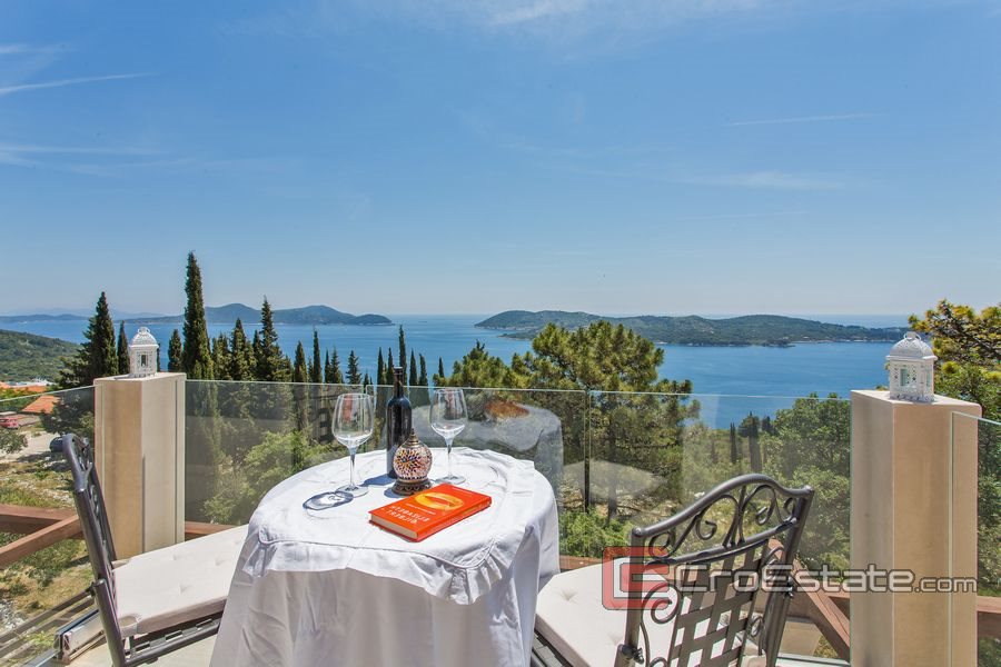 Lyxig villa med öppen havsutsikt belägen på en plats nära Dubrovnik.