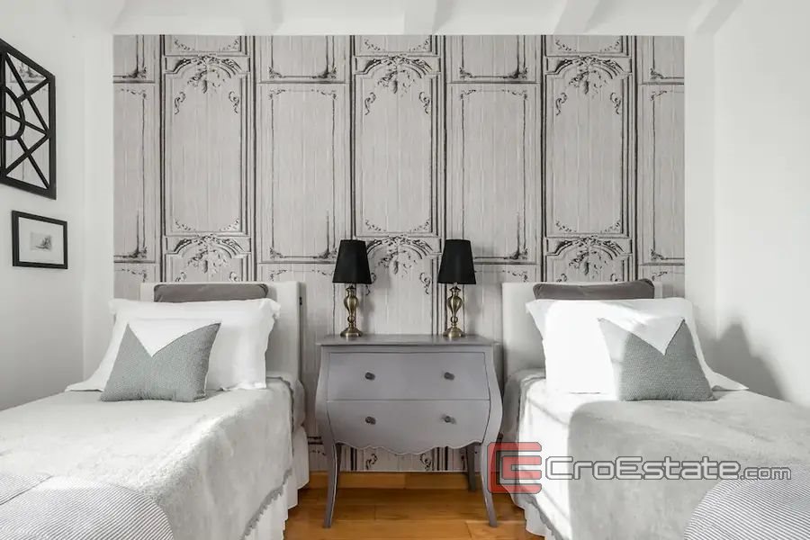 En intern trappa leder till andra våningen där det finns fem sovrum, medan det på tredje våningen finns två sovrum.