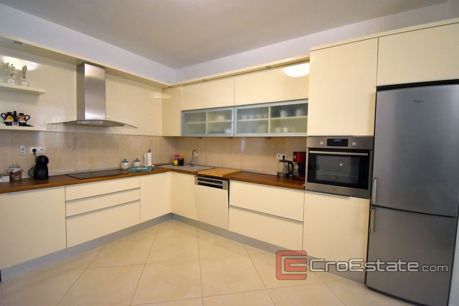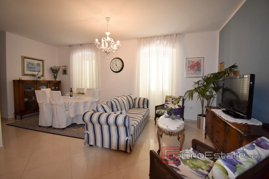 Wenn Sie in die erste Etage hinaufsteigen, finden Sie ein vielseitiges Apartment, das sowohl über eine Innentreppe als auch über einen privaten Außeneingang zugänglich ist. Diese Einheit besteht aus drei Zimmern, jedes mit eigenem Bad, einer Waschküche mit zusätzlicher Toilette, einem geräumigen, offenen Bereich mit Wohnzimmer, Küche und Esszimmer sowie einem Balkon mit atemberaubendem Meerblick. Jedes Zimmer ist mit Satellitenfernsehen, Klimaanlage und schallisolierten Qualitätsfenstern ausgestattet und sorgt so für eine ruhige und friedliche Atmosphäre.