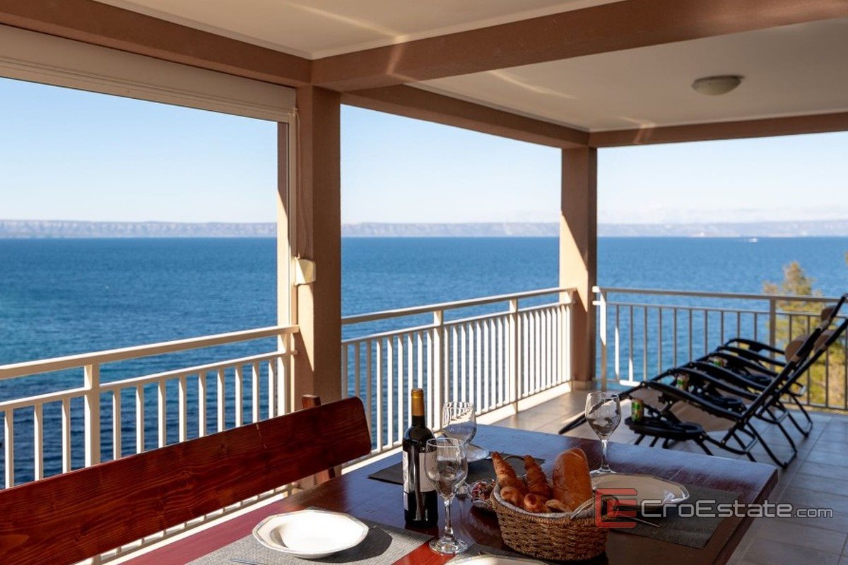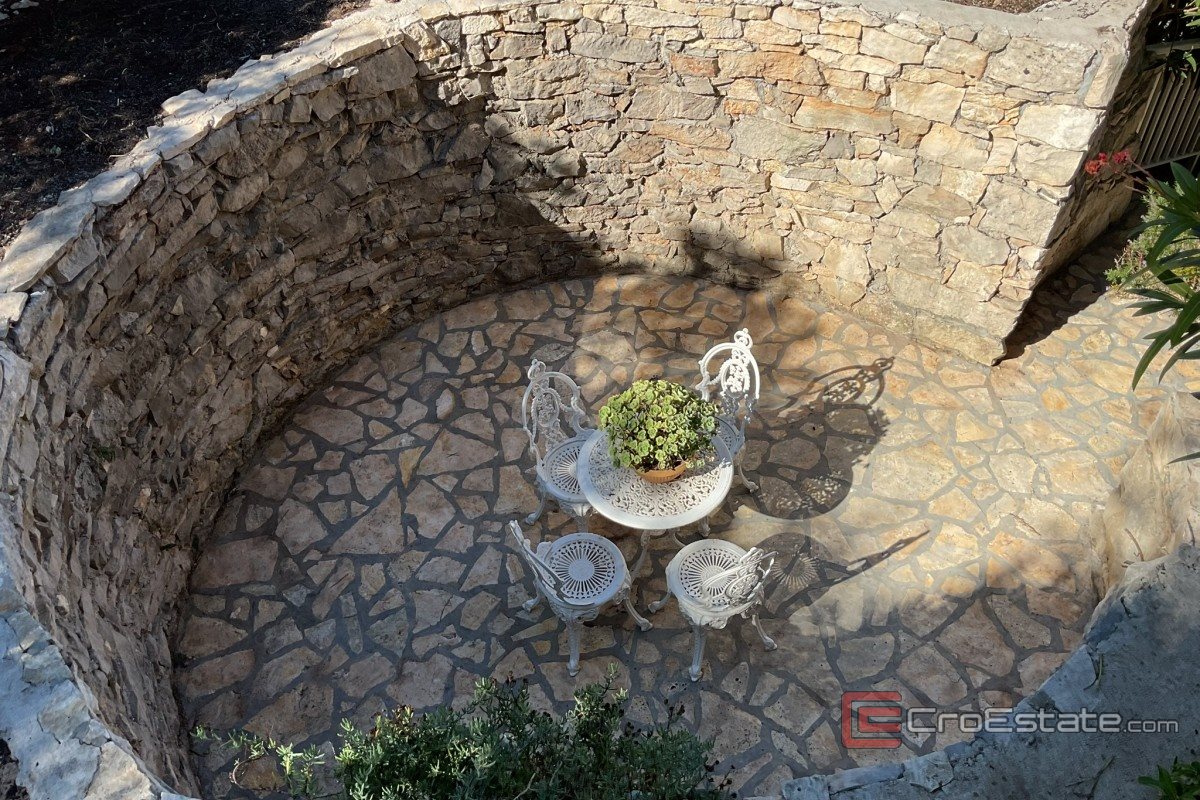 Das Meer ist nur wenige Schritte entfernt; der Zugang zum Wasser ist über eine Treppe oder direkt vom Ufer aus möglich. Vor dem Haus befinden sich ein kleiner Steg zum Anlegen eines Bootes sowie ein Steinplateau zum Sonnenbaden. Die Terrassen können mit Glaswänden geschlossen werden, die Schutz vor Sonne und Wind bieten. Außerdem besteht die Möglichkeit, einen Swimmingpool zu bauen, der den mediterranen Luxus dieser Lage noch weiter unterstreicht.
