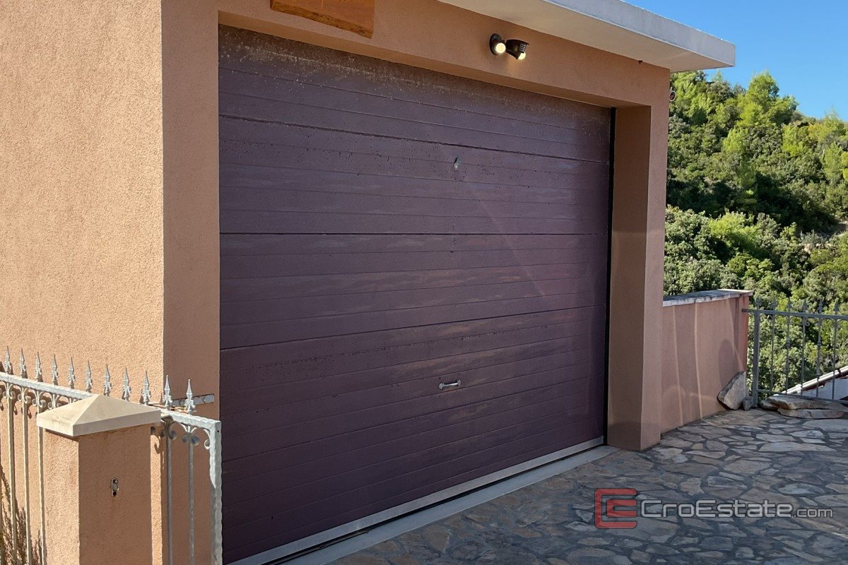 Der Garten wurde sorgfältig angelegt und gepflegt und ist mit einem automatischen Bewässerungssystem ausgestattet. Vor dem Haus befinden sich eine Garage mit Rolltoren und ein geräumiger überdachter Parkplatz mit Platz für sechs Fahrzeuge. Das gesamte Anwesen ist videoüberwacht. Der Außenbereich ist mit einem Kamin, Duschen und einem Tisch am Meer ausgestattet – ideal für gesellige Abende und zum Entspannen bei Sonnenuntergang.