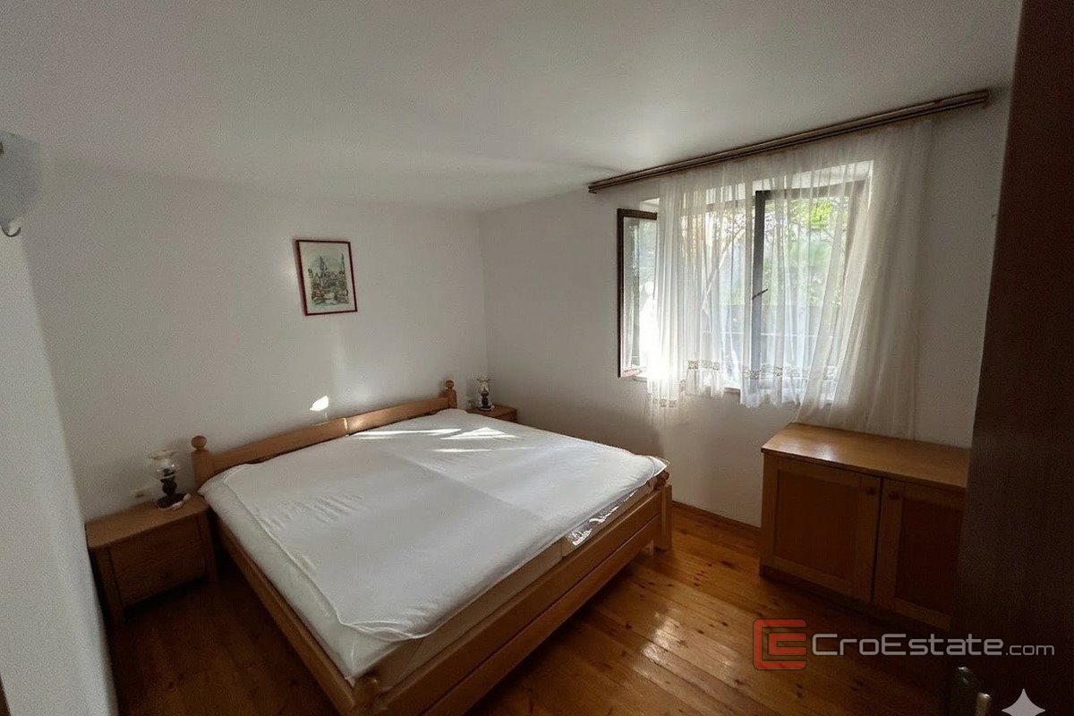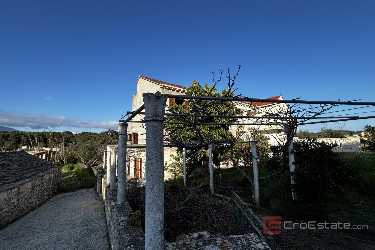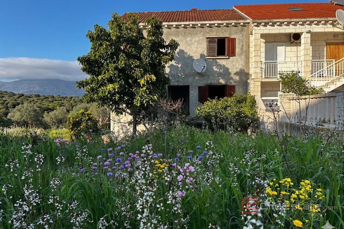 Till salu finns ett parhus beläget på en lugn och trevlig gata i Lumbarda, på ön Korčula, bara några minuters promenad från havet och stranden. Även om det inte ligger i första raden mot havet, har fastigheten en vacker, öppen utsikt över havet, bukten och en liten småbåtshamn.