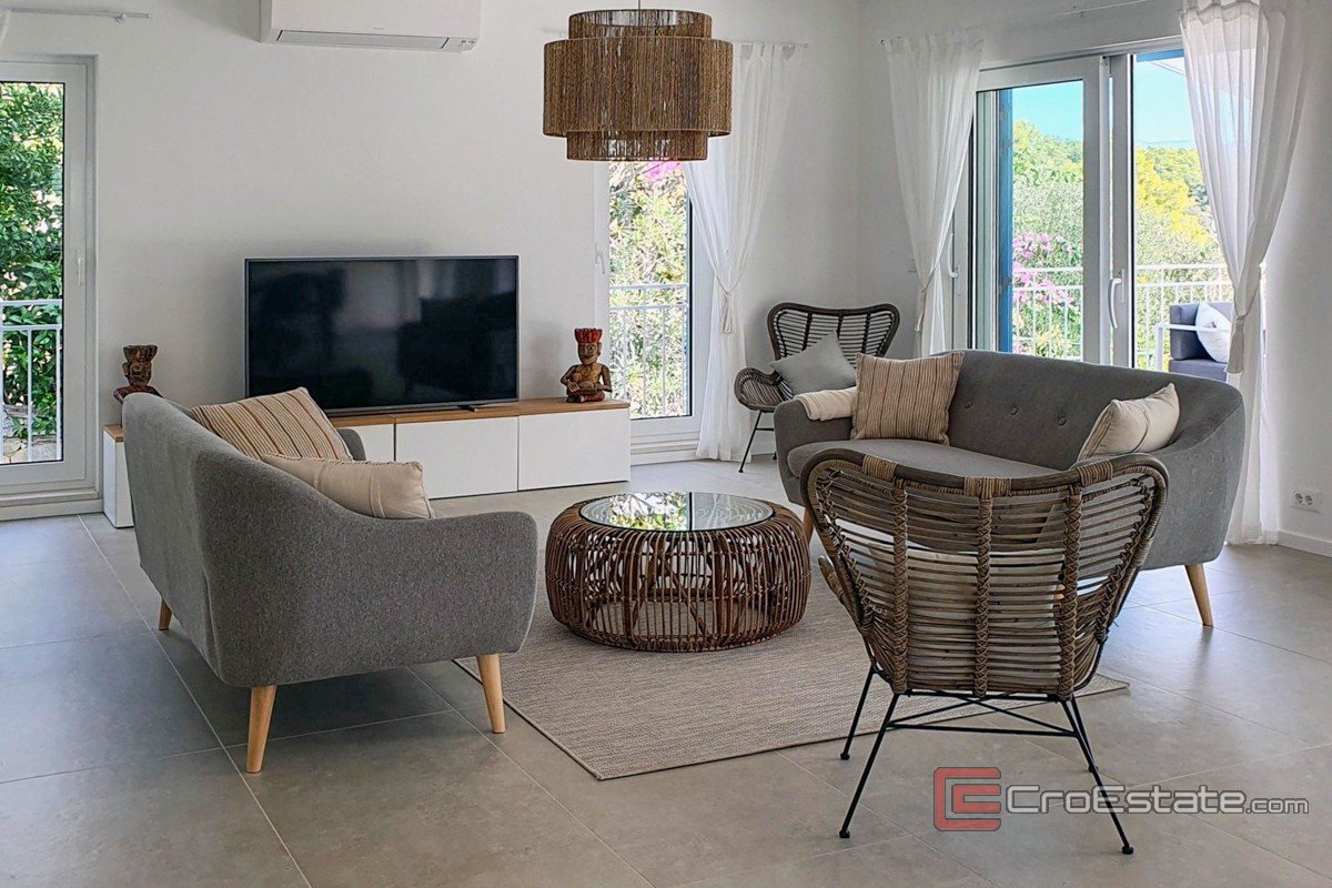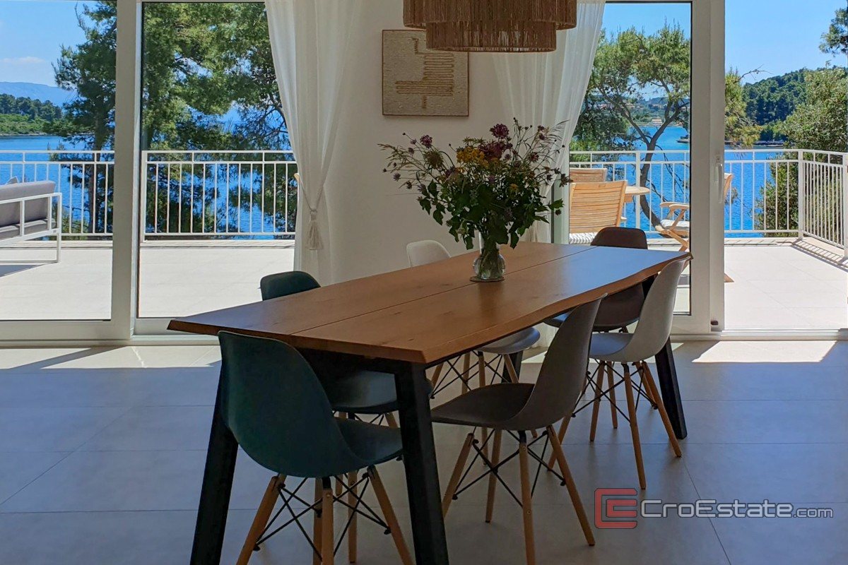 Zum Verkauf steht eine moderne Luxusvilla in ruhiger Wohnlage, in einer der schönsten Buchten der Insel Korčula. Das 2022 fertiggestellte Anwesen vereint zeitgenössische Architektur, funktionale Raumaufteilung und die unmittelbare Nähe zum Meer.