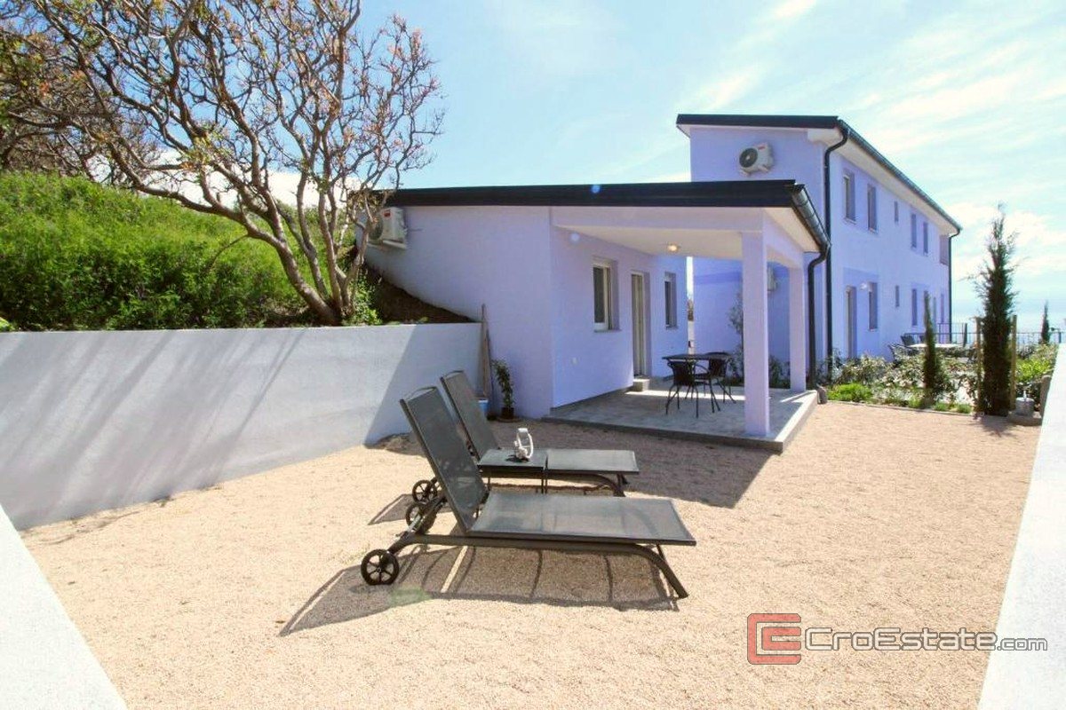 Zum Verkauf steht ein modernes Einfamilienhaus in Baška auf der Insel Krk mit einer Gesamtwohnfläche von 247 m² auf drei Etagen.