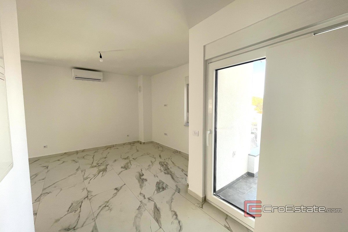 I Soline-bukten på ön Krk säljs en lägenhet med två sovrum på 60 m², belägen på andra våningen i ett litet bostadshus. Lägenheten består av en entréhall, toalett, badrum, två sovrum, kök med matplats och vardagsrum med tillgång till en täckt terrass. Terrassen erbjuder en trevlig utsikt över havet. Lägenheten renoverades 2021, är modernt inredd, luftkonditionerad, har PVC-snickerier och säljs fullt möblerad. Den har en parkeringsplats på den gemensamma innergården. Byggnaden är snygg och välskött, och dokumentationen är ren och redo för ägarbyte. Läget är lugnt, och havet, stränderna och alla nödvändiga bekvämligheter finns i närheten.