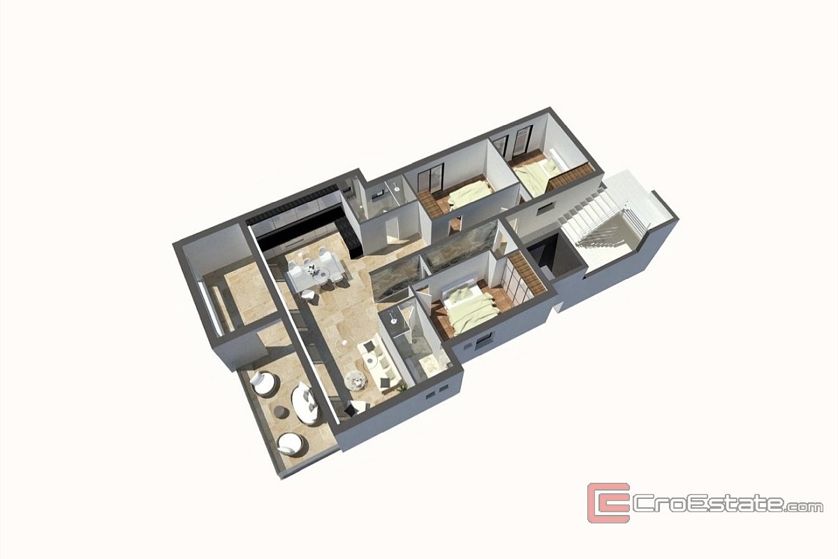 Enligt det befintliga projektet planeras byggandet av en byggnad med tre bostäder, medan ett garage för tre personbilar planeras på bottenvåningen. En bostadsenhet planeras på första, andra och tredje våningen. Byggnadens totala bruttobyggnadsyta är 520 m², och projektet inkluderar ett platt, oframkomligt tak.