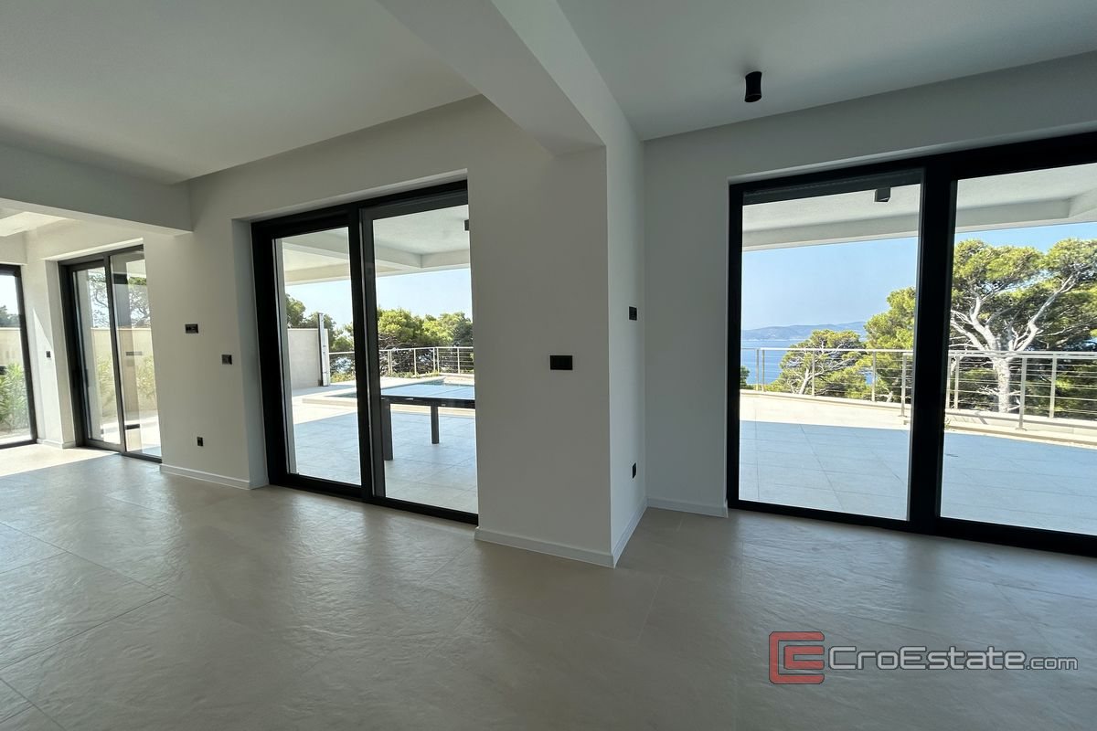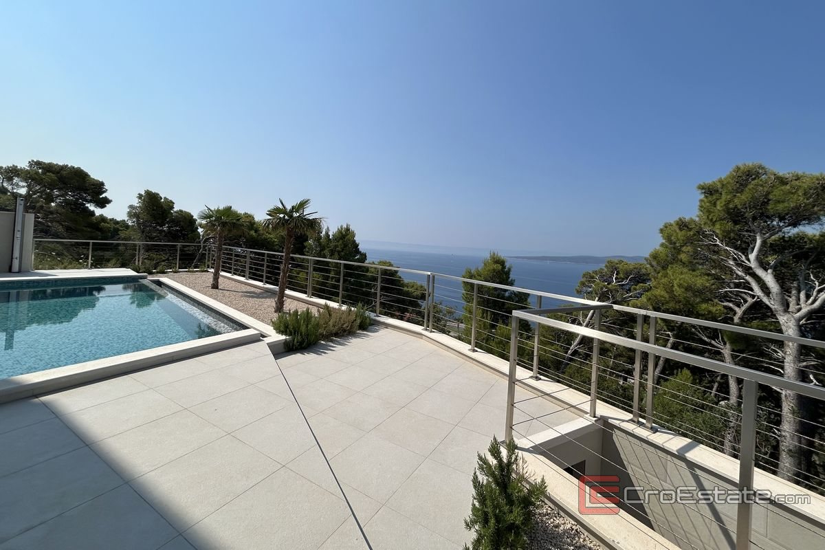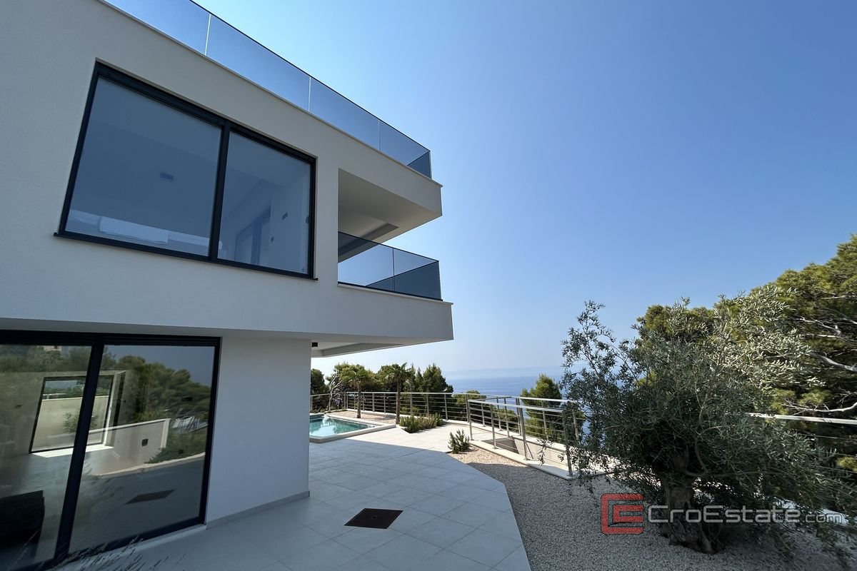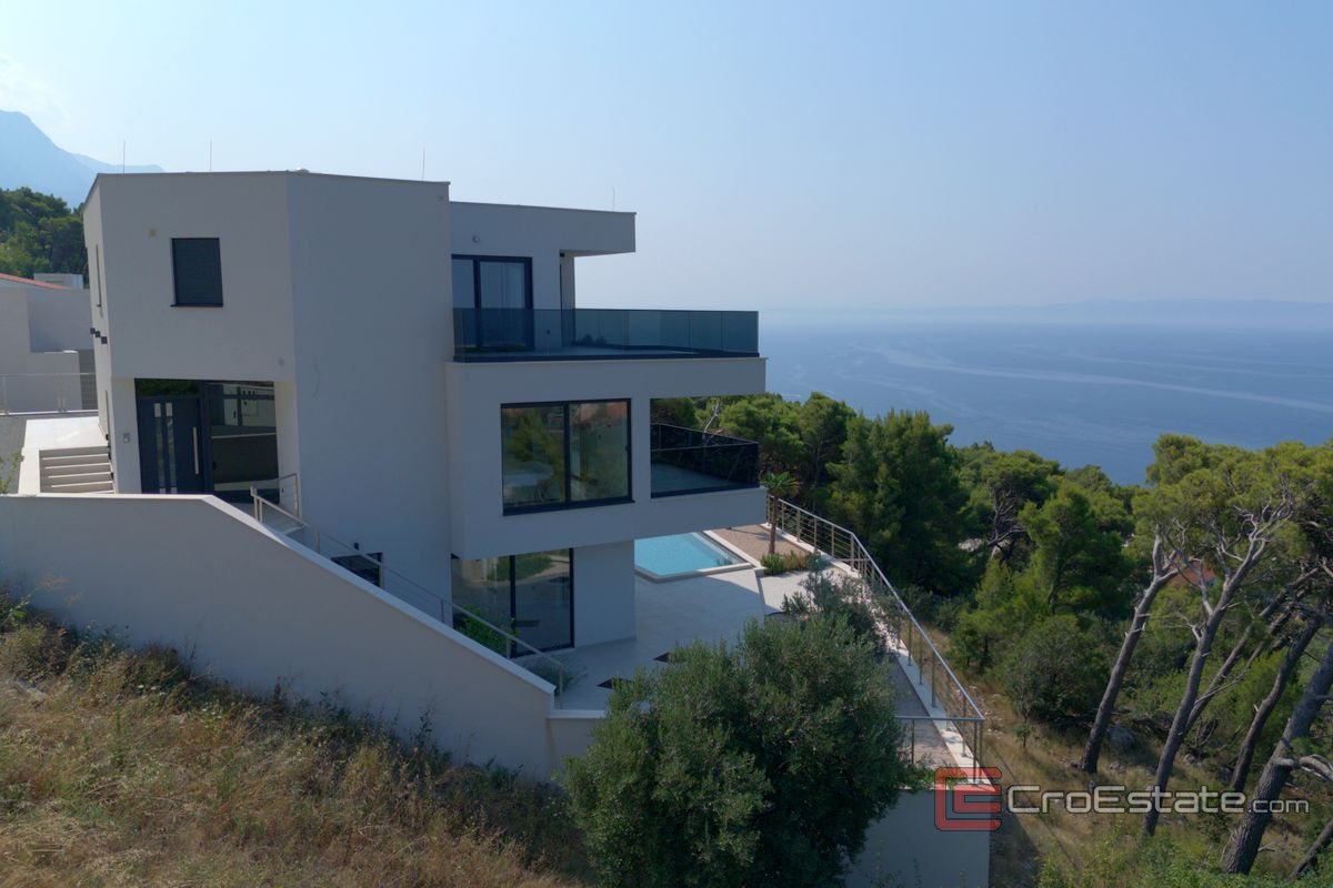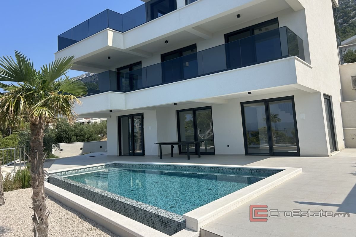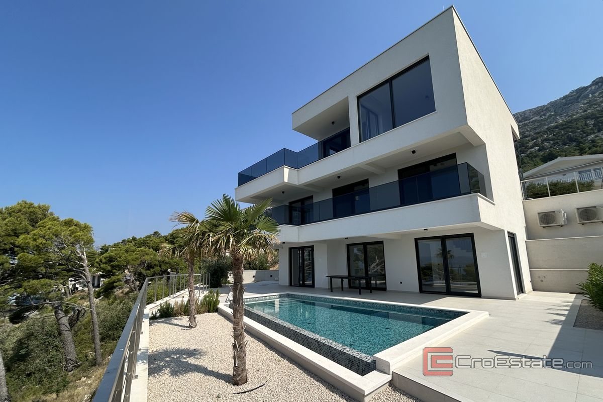 Denna rymliga villa med pool har ett idylliskt läge vid foten av berget Biokovo och erbjuder panoramautsikt över havet. Villan sträcker sig över tre våningar med en total boyta på 400 m², belägen på en tomt på 515 m². Beläget i en lugn del av området, erbjuder det framtida ägare en oas av lugn och fantastisk utsikt från alla nivåer.