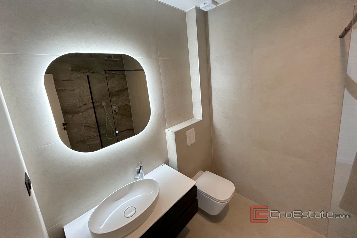 Villan är uppdelad i två bostäder. Den första enheten innehåller ett kök med matplats och vardagsrum, som vetter mot en rymlig terrass med pool, solplats, grillplats och ett rum avsett för bastu. På första våningen i denna enhet finns tre sovrum, alla med eget badrum och tillgång till balkong.