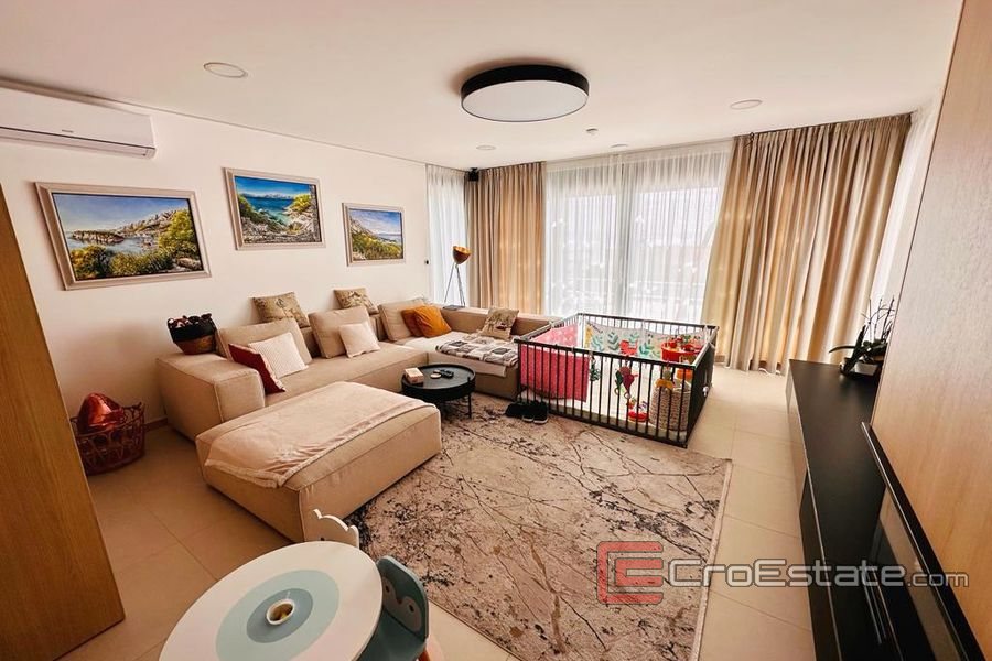 På första våningen finns 3 sovrum och 3 badrum och en stor terrass med utsikt över havet och Makarska rivieran.