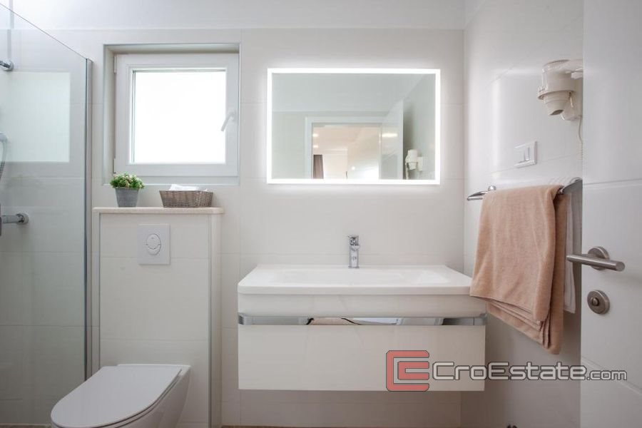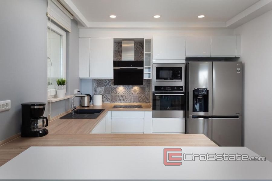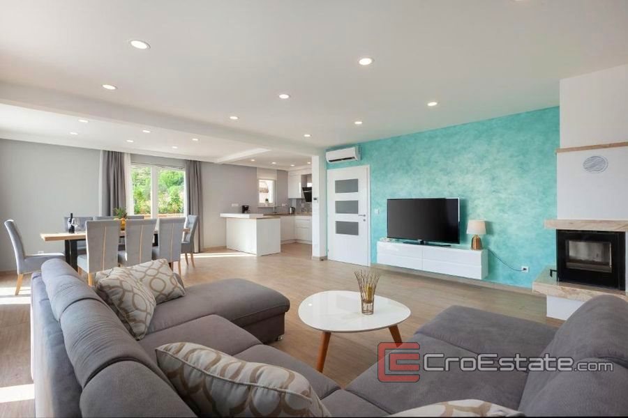 En villa med pool som kan beskrivas som ett autentiskt dalmatiskt familjehus i modern stil, omgivet av grönska och lugn. Husets läge representerar en perfekt balans mellan behovet av staden, nattlivet och behovet av en lugn miljö.