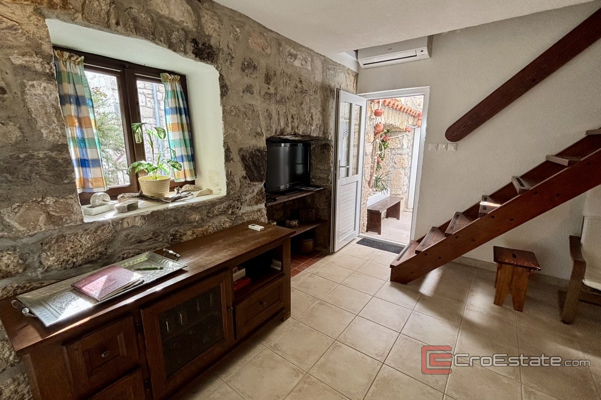 Beläget i ett exceptionellt läge, precis på klippan ovanför havet, i en charmig dalmatisk by, erbjuder detta renoverade stenhus en vacker, öppen utsikt över havet.