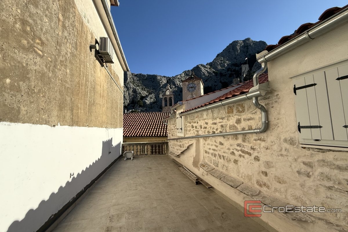 Interna trappor leder till tredje våningen, där det finns en rymlig terrass med utsikt över det unika landskapet i Omiš - inklusive Cetina Canyon och stadens charmiga gator.