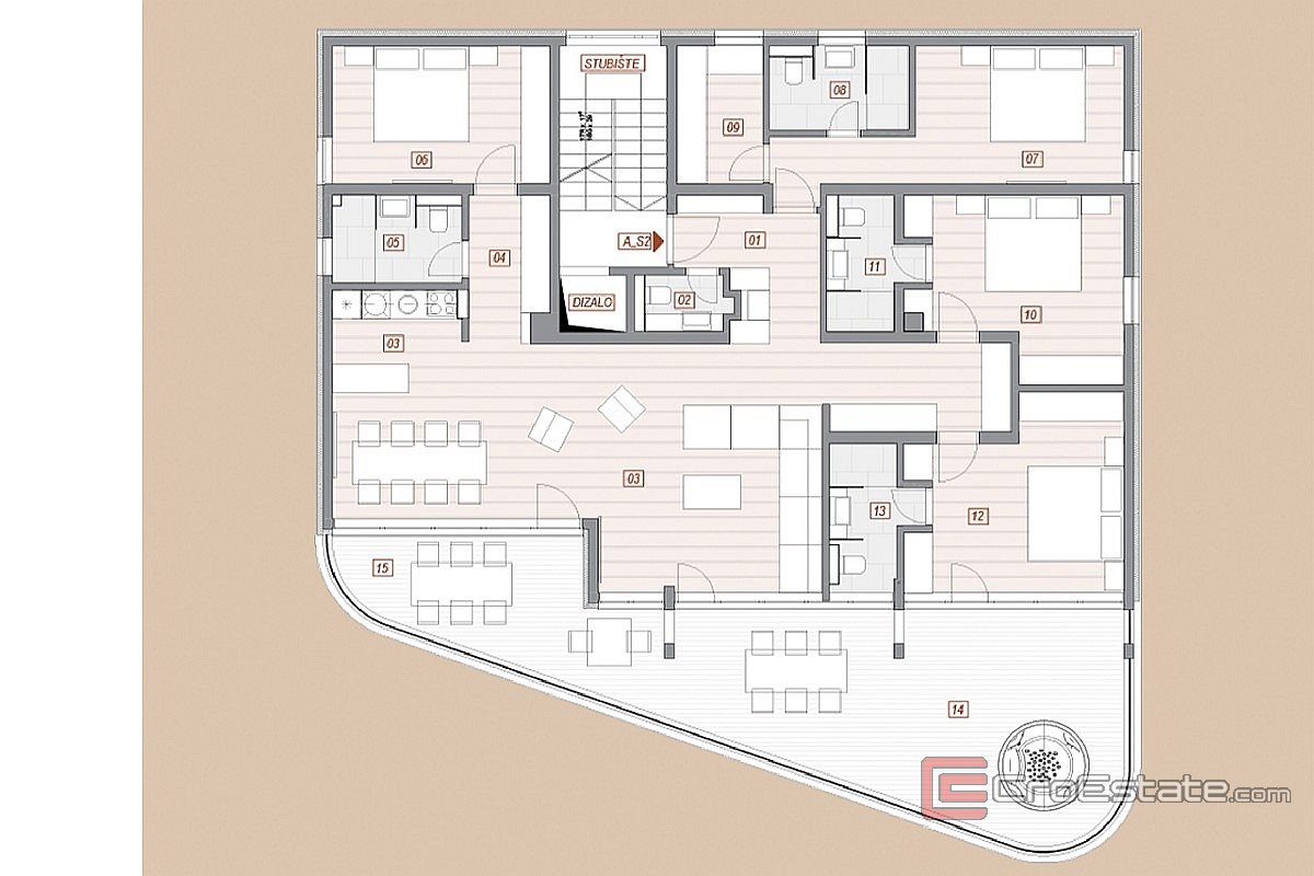 Till salu finns en unik fastighet i Opatija, en lägenhet som sträcker sig över hela tredje våningen i en lyxig nybyggnad, med en total yta på 210 m².