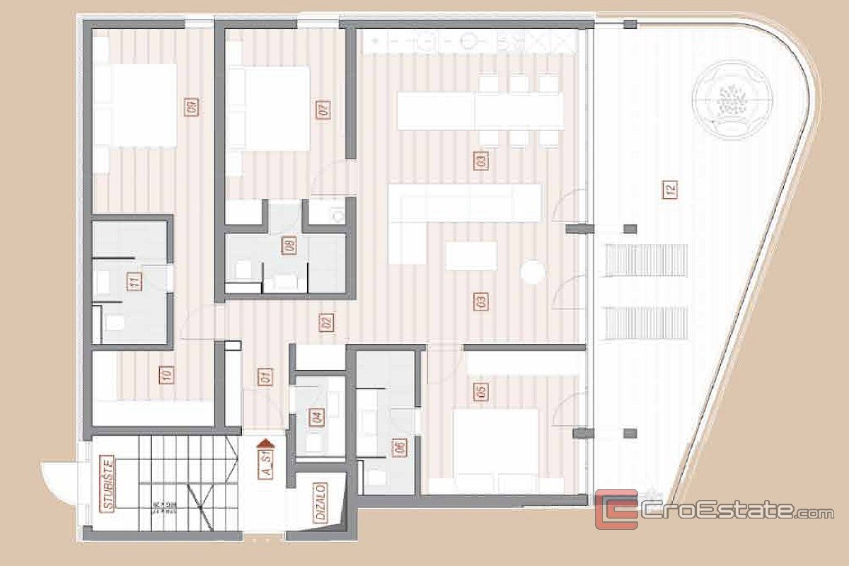 Vi presenterar en förstklassig fastighet i Opatija - en trerumslägenhet med en total yta på 144 m², belägen på bottenvåningen i en exklusiv nybyggnad.