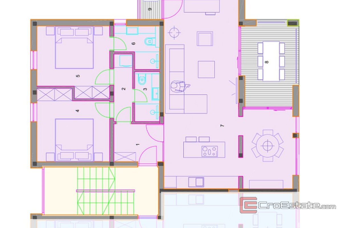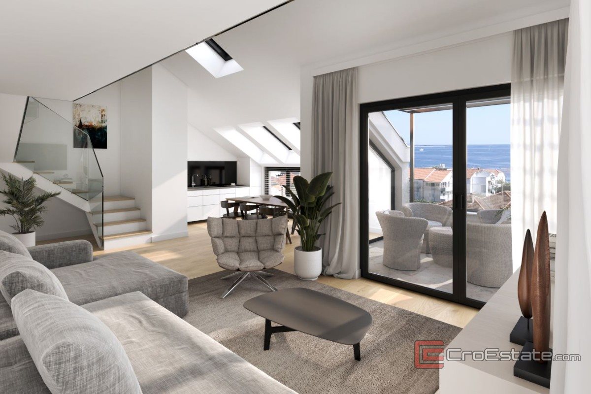 Eine äußerst attraktive Zwei-Zimmer-Wohnung im ersten Stock eines hochwertigen Neubaus in einem ruhigen Viertel von Orebić steht zum Verkauf. Die Wohnung mit einer Gesamtfläche von 89 m² verfügt über zwei komfortable Schlafzimmer, zwei moderne Badezimmer und zwei Loggien.