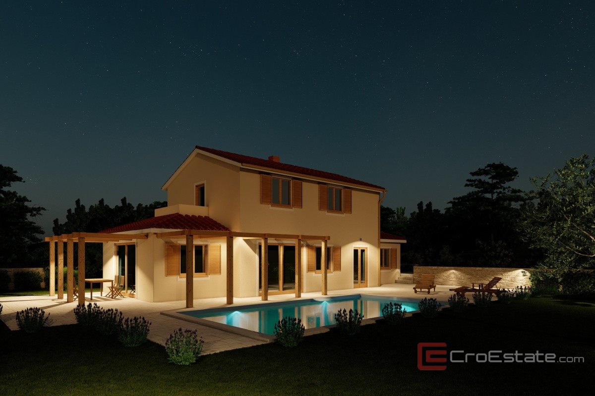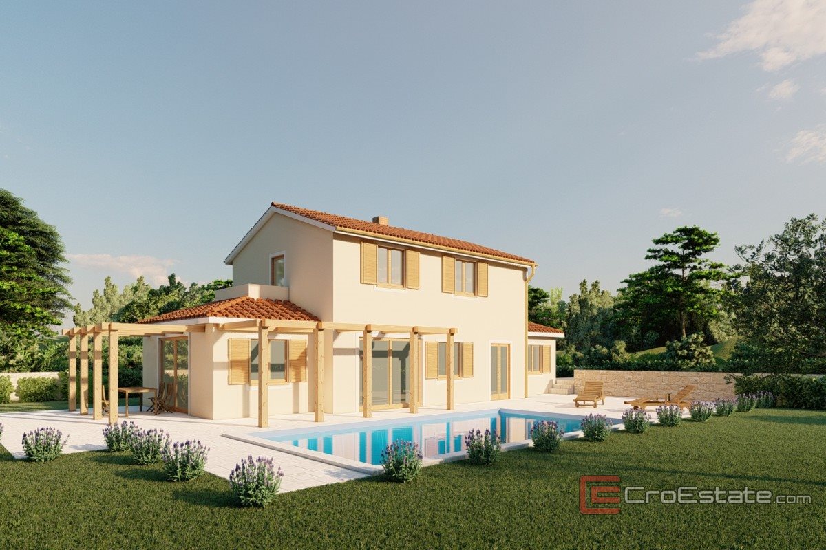 Beläget i en lugn miljö, erbjuder denna fastighet en unik möjlighet att äga en modern villa med pool, som för närvarande är under uppbyggnad. Bostadsbyggnaden kommer att ha en bottenvåning och första våningen, noggrant utformade för att ge komfort, funktionalitet och avskildhet i hjärtat av Istriens natursköna landsbygd.