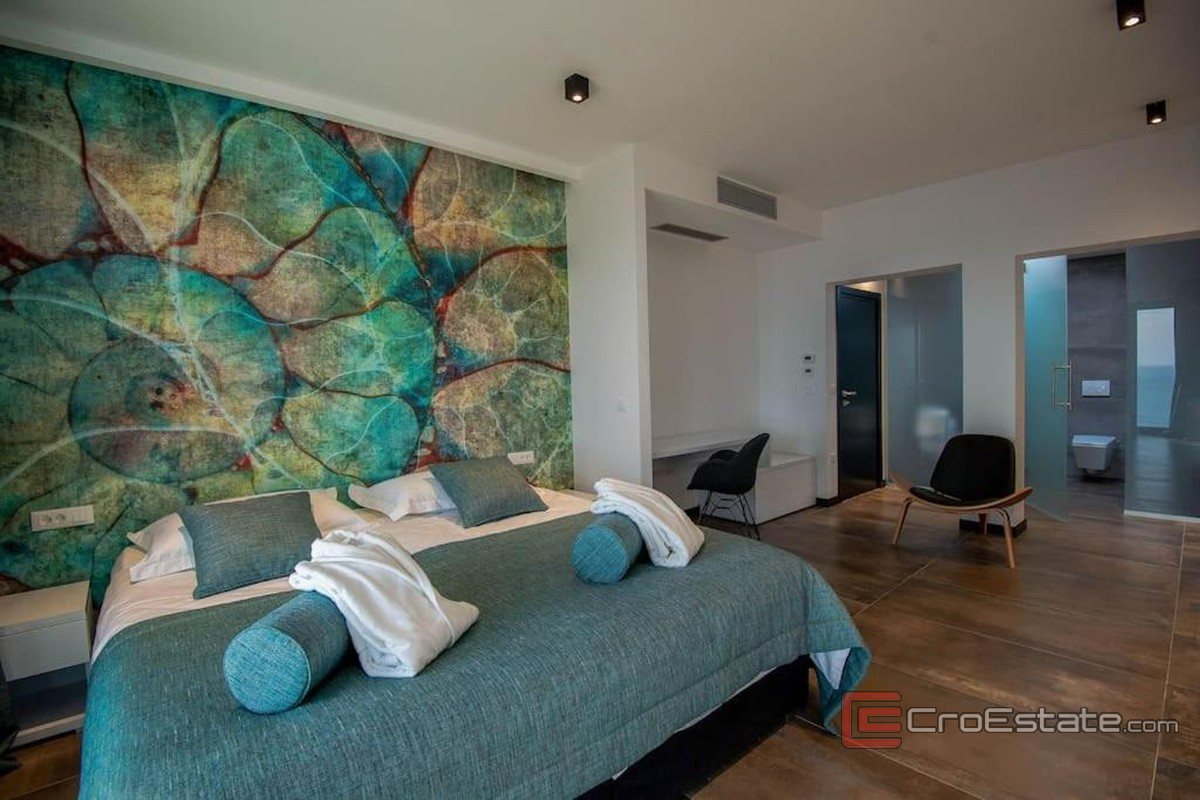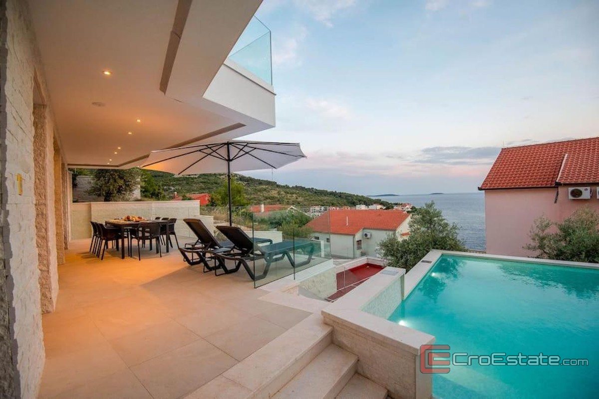 En modern villa med pool och havsutsikt, bara 90 meter från kusten, belägen nära Primošten.