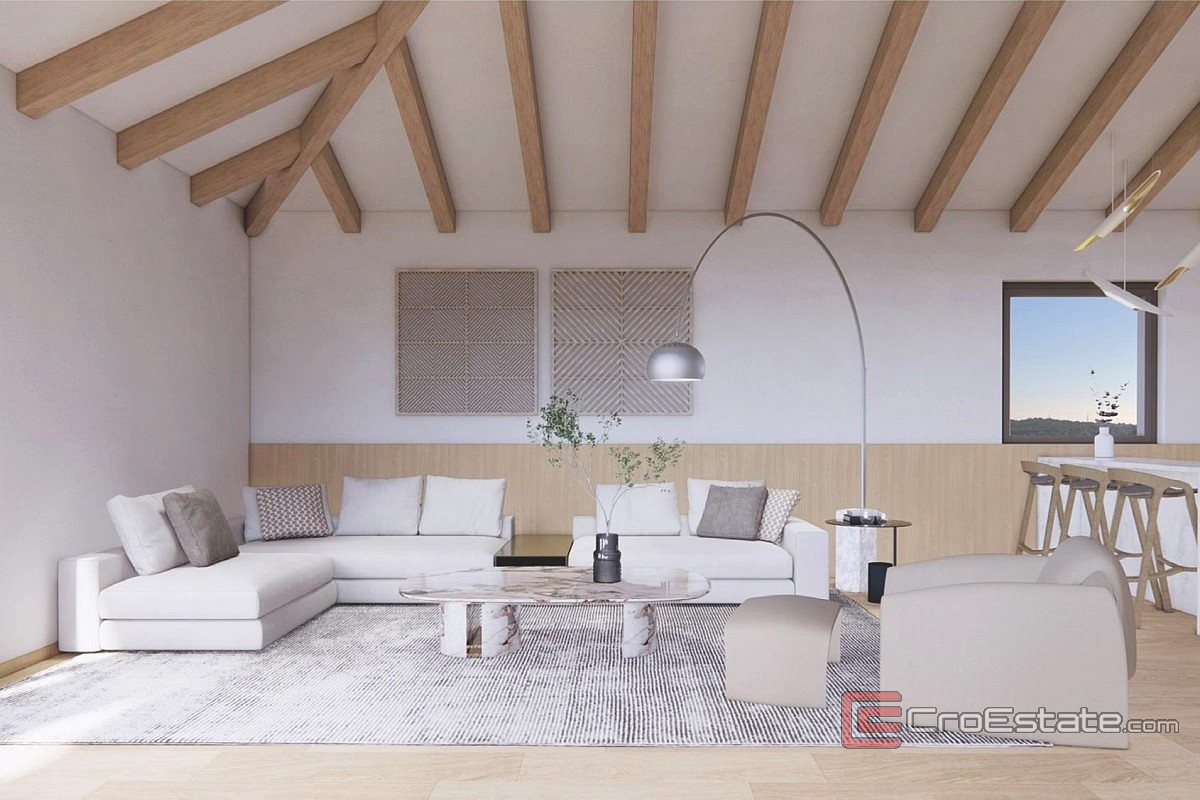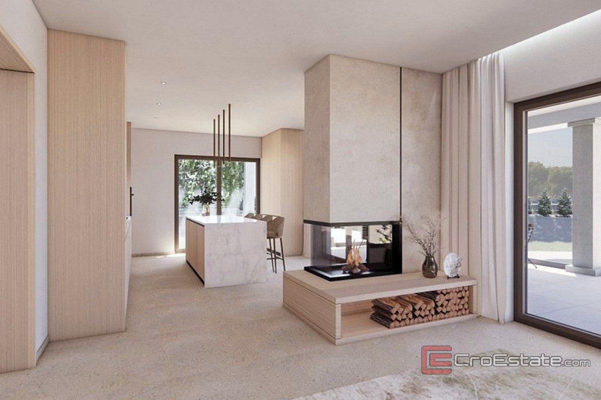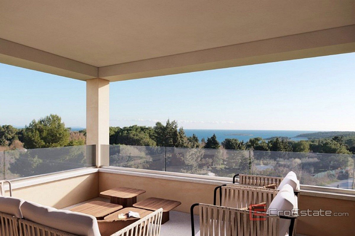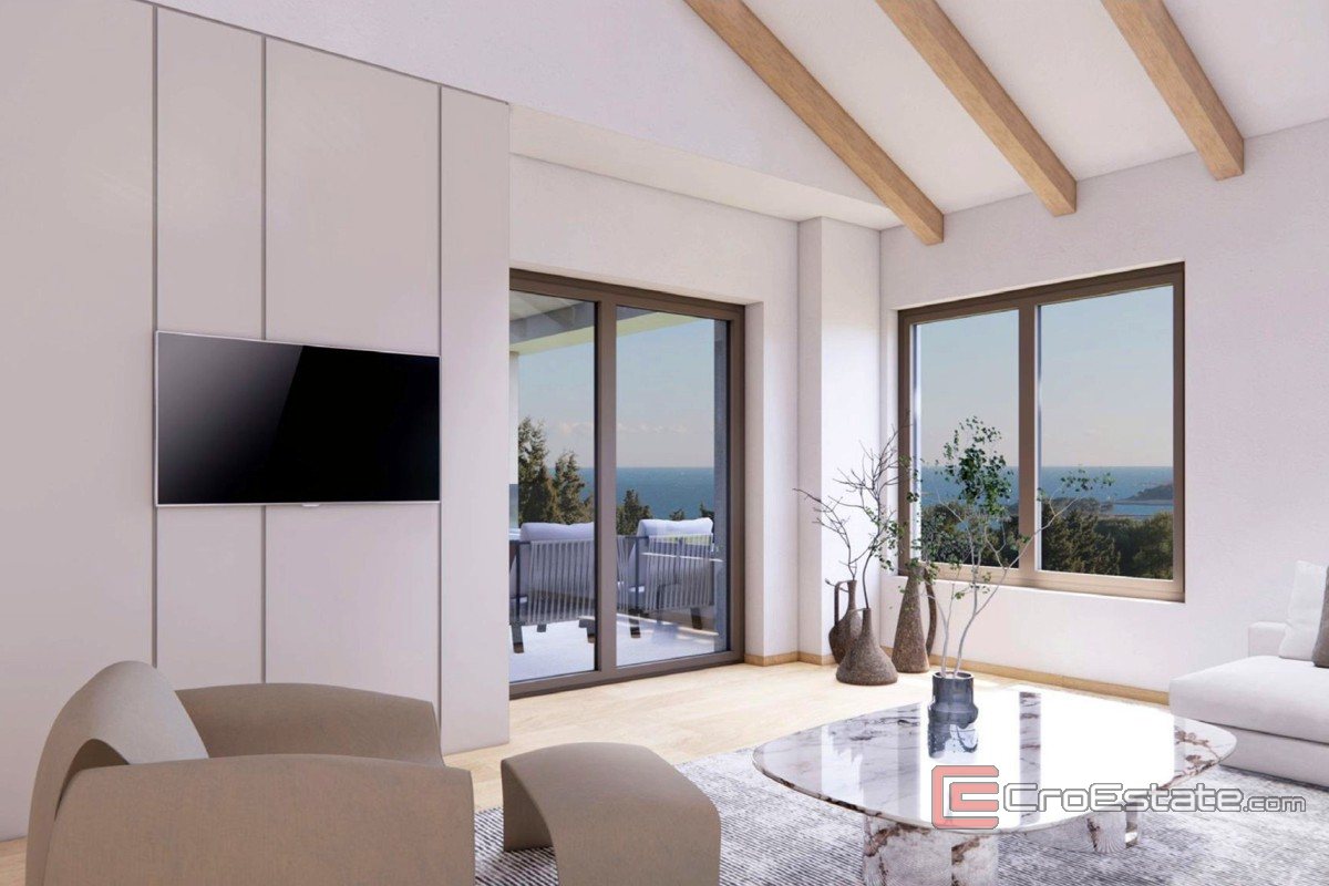 Zum Verkauf steht ein neu gebautes Haus in Premantura. Es befindet sich in außergewöhnlicher Lage und bietet Ruhe, Privatsphäre und einen freien Blick auf den grünen Pinienwald und die glitzernde Adria.