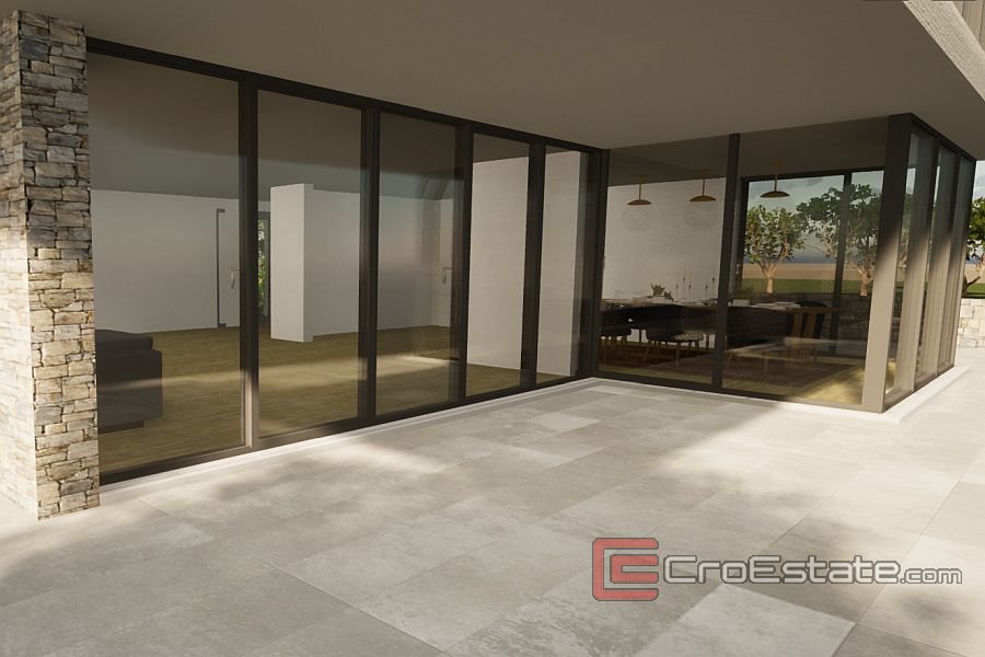 En modern villa med öppen havsutsikt under uppbyggnad. Beläget i ett attraktivt läge, 400 m från havet.