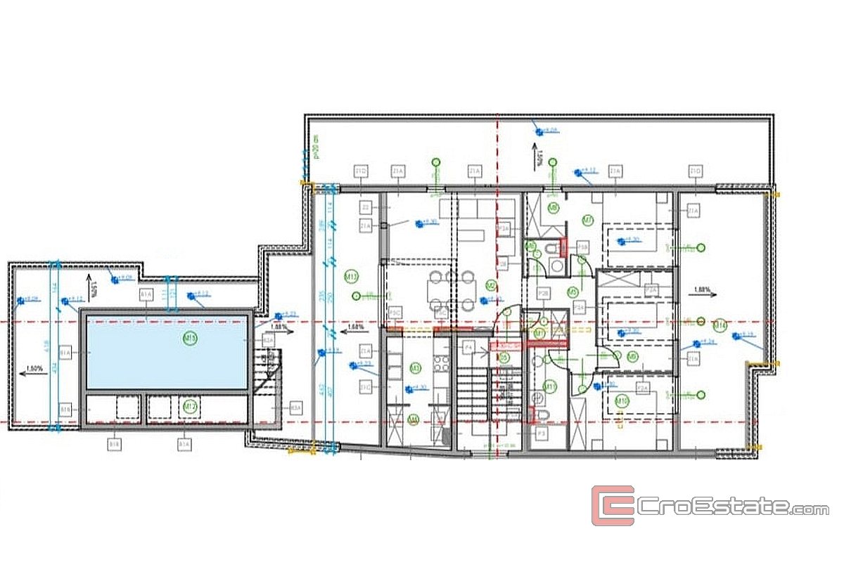 Takvåningen sträcker sig över 92 m² boyta och inkluderar tre bekväma sovrum, två moderna badrum och ett rymligt vardagsrum med ett kök i öppen planlösning. Det som gör det speciellt är de stora terrasserna som täcker en total yta på 179,64 m², inklusive en privat pool med en hisnande utsikt över havet och de omgivande öarna.