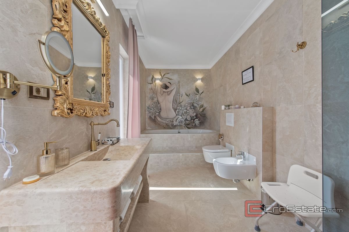 Dieses luxuriöse Anwesen erstreckt sich über zwei Etagen. Im Erdgeschoss befinden sich eine Garage, ein Abstellraum und eine Waschküche, zwei Schlafzimmer mit eigenem Bad und einer finnischen Sauna, ein Wohnzimmer, eine Küche und ein Esszimmer mit Zugang zur Außenterrasse von allen Räumen. Eine Innentreppe führt in die obere Etage, die aus drei Schlafzimmern besteht, jedes mit eigenem Bad und Zugang zu einem eigenen Balkon. In der Mitte des Obergeschosses befindet sich ein Billardtisch für Spieler und ein Ausgang zum überdachten Außenbalkon mit Whirlpool.