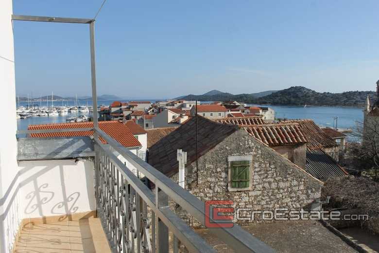 Hus till salu med havsutsikt beläget nära Sibenik, nära havet. Huset på 260 m2 består av en bottenvåning och två våningar. På bottenvåningen finns en studiolägenhet på 33 m2 och ett extra rum, källare, badrum och terrass. På första våningen finns två lägenheter med ett sovrum på 45 m2, som förutom rummet har kök, vardagsrum, badrum, balkong och terrass. På andra våningen finns en lägenhet med två sovrum på 80 m2, med vardagsrum, kök, badrum och balkong. Denna våning har utsikt över hela platsen. Den nya fasaden installerades 2015 och taket byttes för tio år sedan. Fastigheten har en parkeringsplats för flera fordon. Intressant egendom för boende och turism.