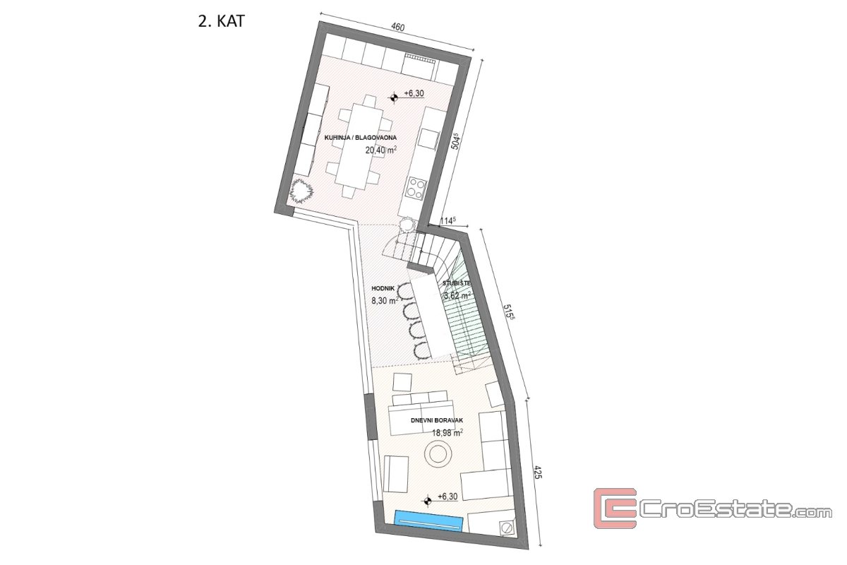 Das Anwesen befindet sich in idealer Lage in der Nähe des Strandes von Banj, der Festung St. Mihovil, Schulen, Kindergärten und aller anderen Einrichtungen, die für ein angenehmes und qualitativ hochwertiges Leben im urbanen Raum notwendig sind.