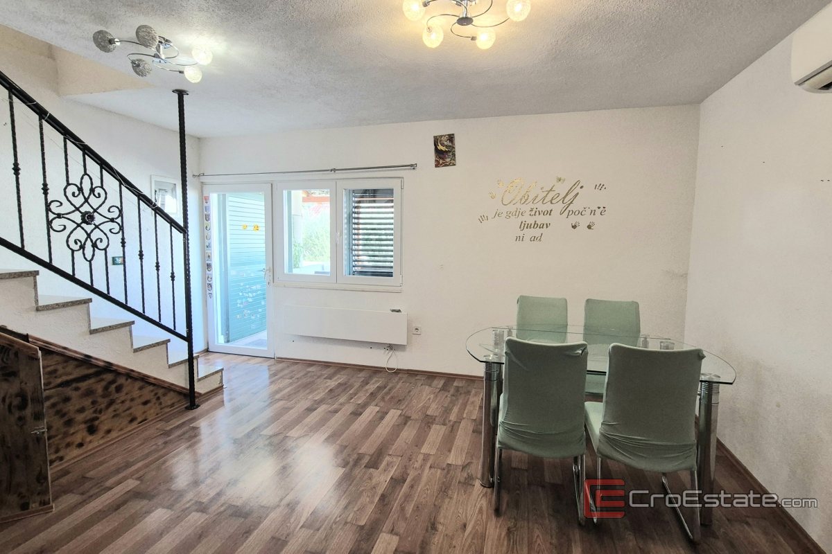 Im Untergeschoss befinden sich eine Taverne mit Kamin, ein Abstellraum und ein Badezimmer. Im Erdgeschoss befindet sich eine Wohnung mit Küche, Esszimmer, Wohnzimmer, Schlafzimmer, Badezimmer und Terrasse. Die zweite, größere Wohnung erstreckt sich über zwei Etagen und besteht aus drei Schlafzimmern, einer Küche, einem Wohnzimmer, zwei Badezimmern, einer überdachten Terrasse und einem offenen Balkon.