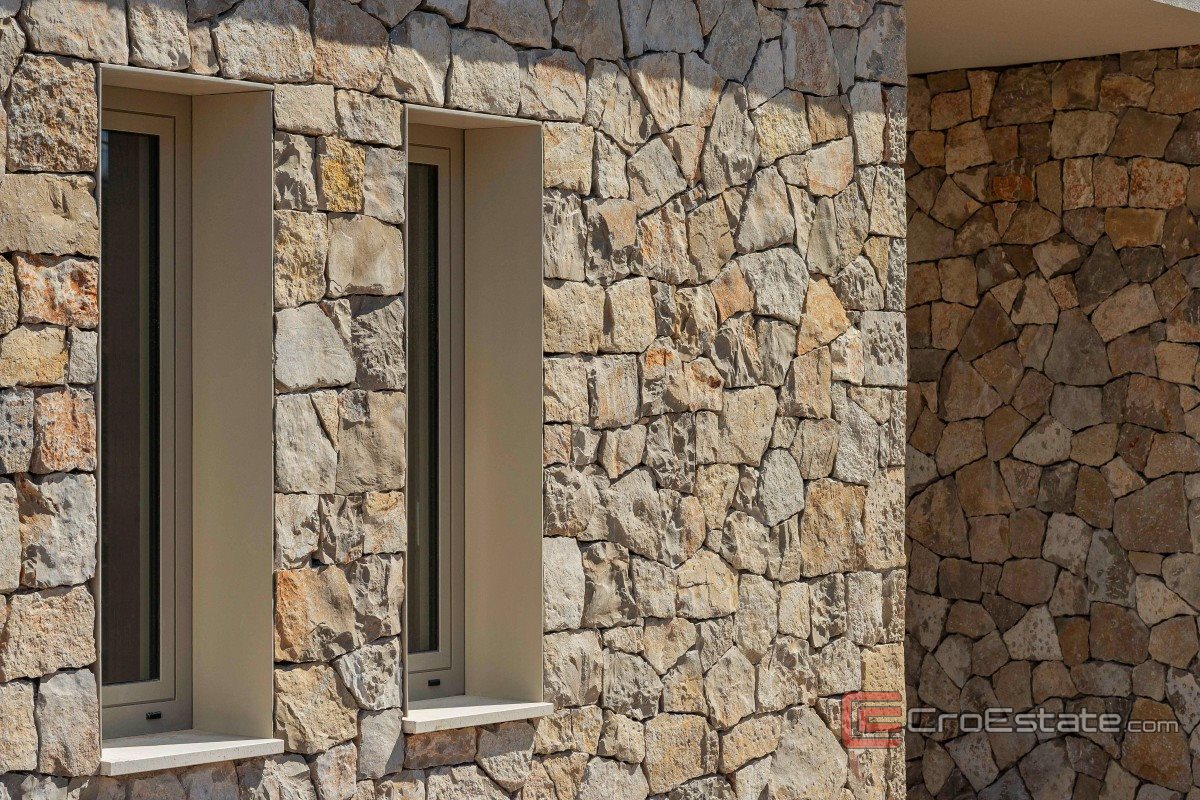 Bottenvåningen har också en täckt utomhusmatsal med öppen spis och ett sommarkök, lämpligt för utomhusliv. Fastigheten inkluderar också en separat del som inkluderar ett förråd, ett maskinrum och ett multifunktionellt rum som kan ha olika syften, såsom gym, kontor eller personalrum. Konstruktionen och utrustningen är av hög kvalitet, med förberedda installationer för luftkonditioneringssystem och poolutrustning. Gården är delvis anlagd med planerade grönområden, och mervärdet representeras av olivträd som är över 500 år gamla, vilket ger utrymmet en autentisk medelhavskaraktär.