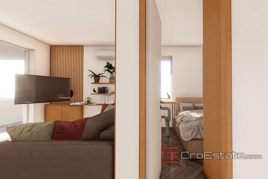 Lägenheten är utrustad med golvvärme, ett lyft-skjutväggsystem och smarta persienner. Dessutom installerades två Mitsubishi luftkonditioneringsenheter.