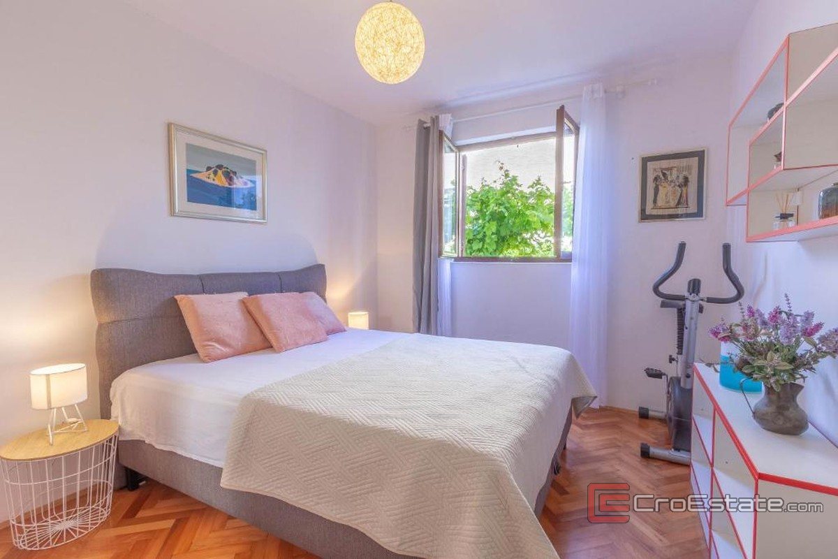 Alla el- och vattenmätare är separata. Under terrassen och eldstaden finns ett extra utrymme som för närvarande används som skafferi, vilket ger en praktisk förvaringslösning. Tre parkeringsplatser finns på baksidan av byggnaden som exklusivt tillhör denna lägenhet. Närheten till alla viktiga bekvämligheter som staden, skola och förskola, samt den omedelbara närheten till havet, stranden och restauranger, gör denna fastighet till ett utmärkt val för familjelivet, men också som en investering i ett eftertraktat läge vid havet.
