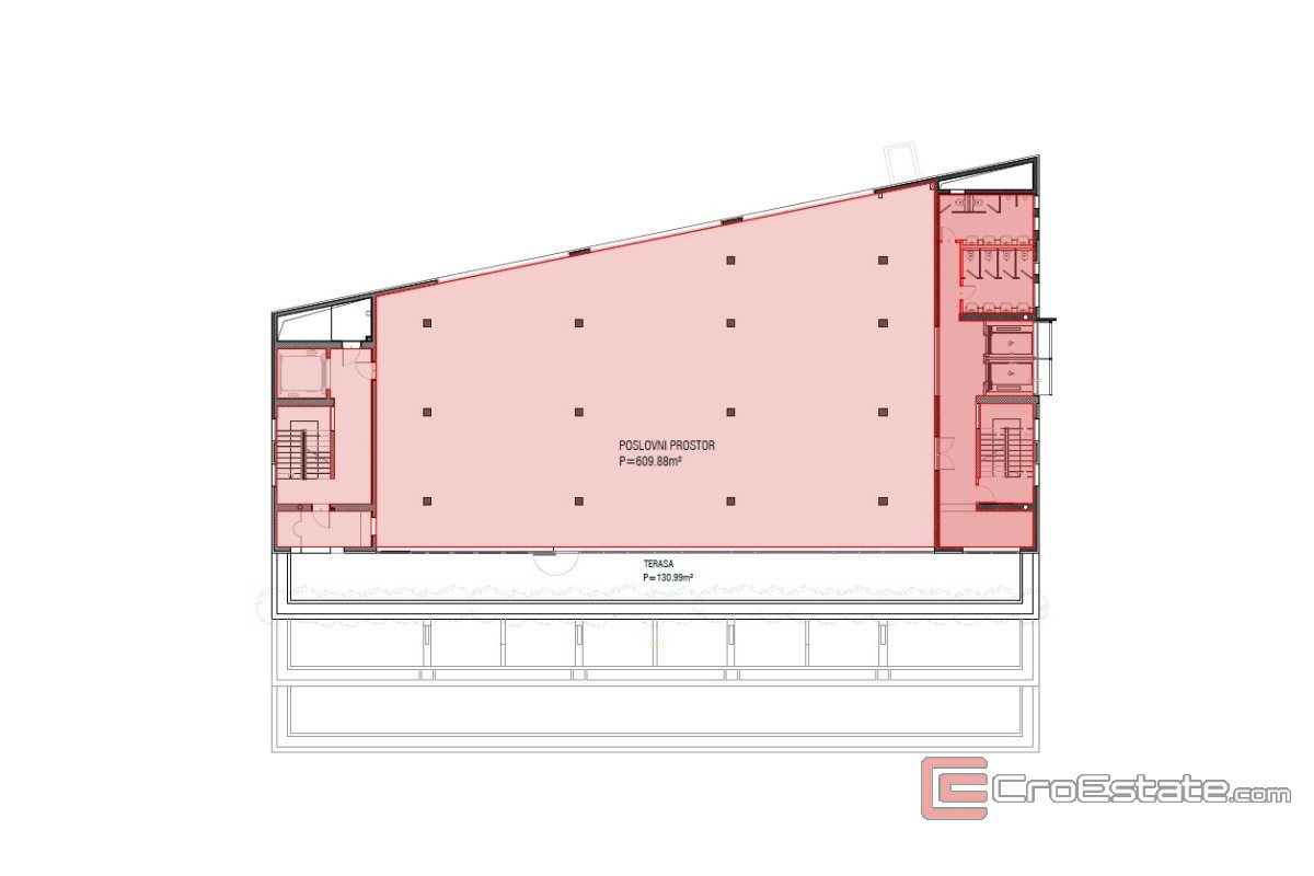 Diese großzügige Gewerbefläche befindet sich im 4. Obergeschoss eines modernen Bürogebäudes und bietet 610 m² Nutzfläche sowie eine außergewöhnliche 130 m² große Terrasse, die zu den Hauptvorteilen der Fläche zählt. Die Fläche befindet sich im Rohbau und ist bereits mit Fliesen ausgelegt.