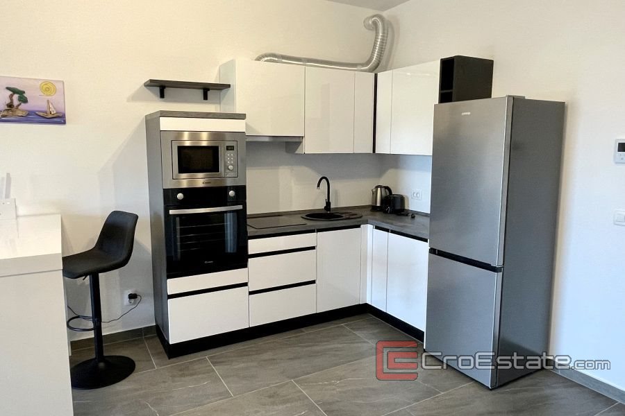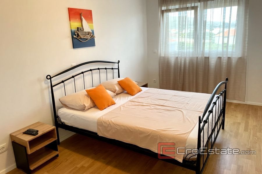 Diese Wohnung befindet sich in einer kleinen Stadt in der Nähe der Stadt Trogir. Der Ort ist ein äußerst geeignetes Reiseziel für Familien. Entlang der gesamten Küste erstreckt sich neben dem kristallklaren Meer ein wunderschöner Kiesstrand mit Restaurants und Bars. Neben dem Strand führt eine wunderschön dekorierte Promenade zum Apartmentkomplex.