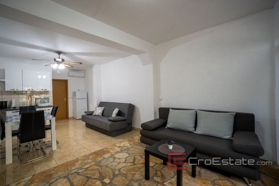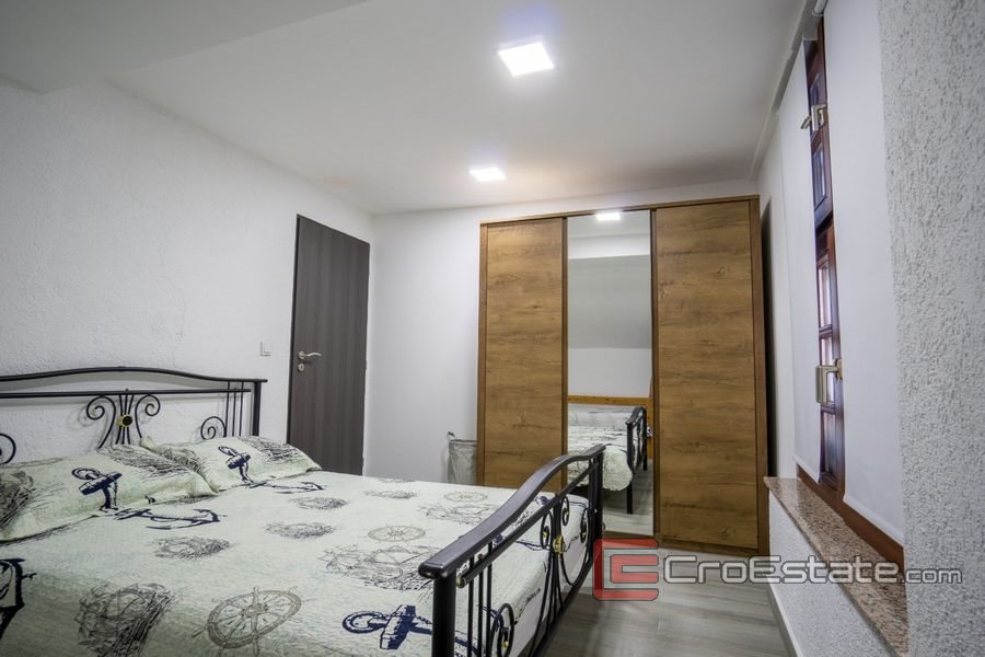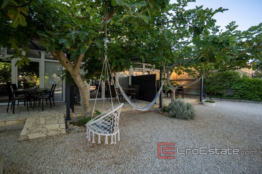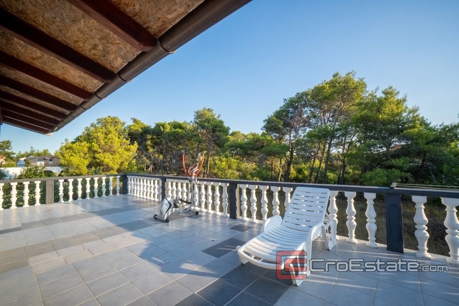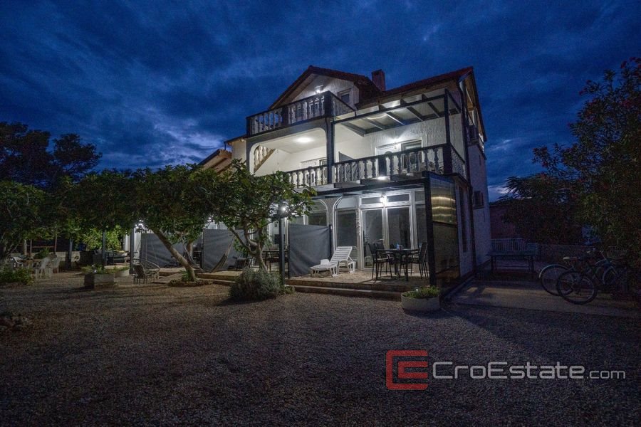 Die Villa ist Teil von 8 Wohnungen und befindet sich auf einem Grundstück von 891 m2. Das Anwesen befindet sich auf der Insel Vir in einer ruhigen Straße, umgeben von viel Grün und Pinienwäldern, die zusätzliche Ruhe bieten.