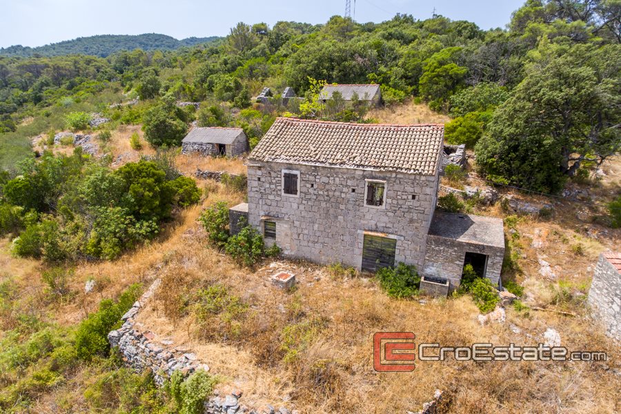 Fastigheten på 8500 m2 består av ett huvudstenhus på 100 m2 och sex mindre stenhus, vardera om 10 till 20 m2.