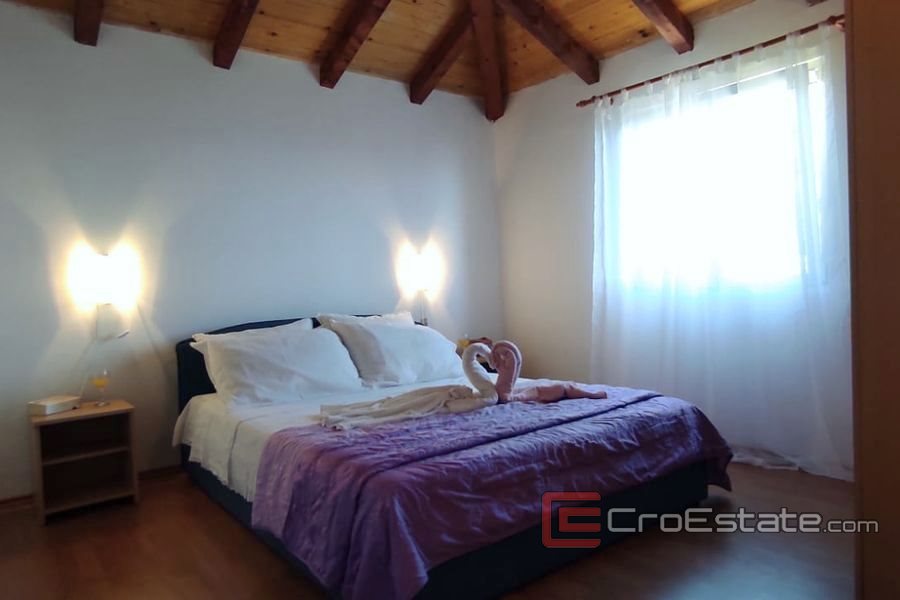 På våningarna finns sju sovrum och tre badrum, på bottenvåningen och första våningen finns tillgång till terrassen som erbjuder en imponerande havsutsikt.