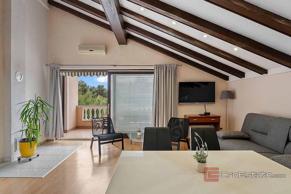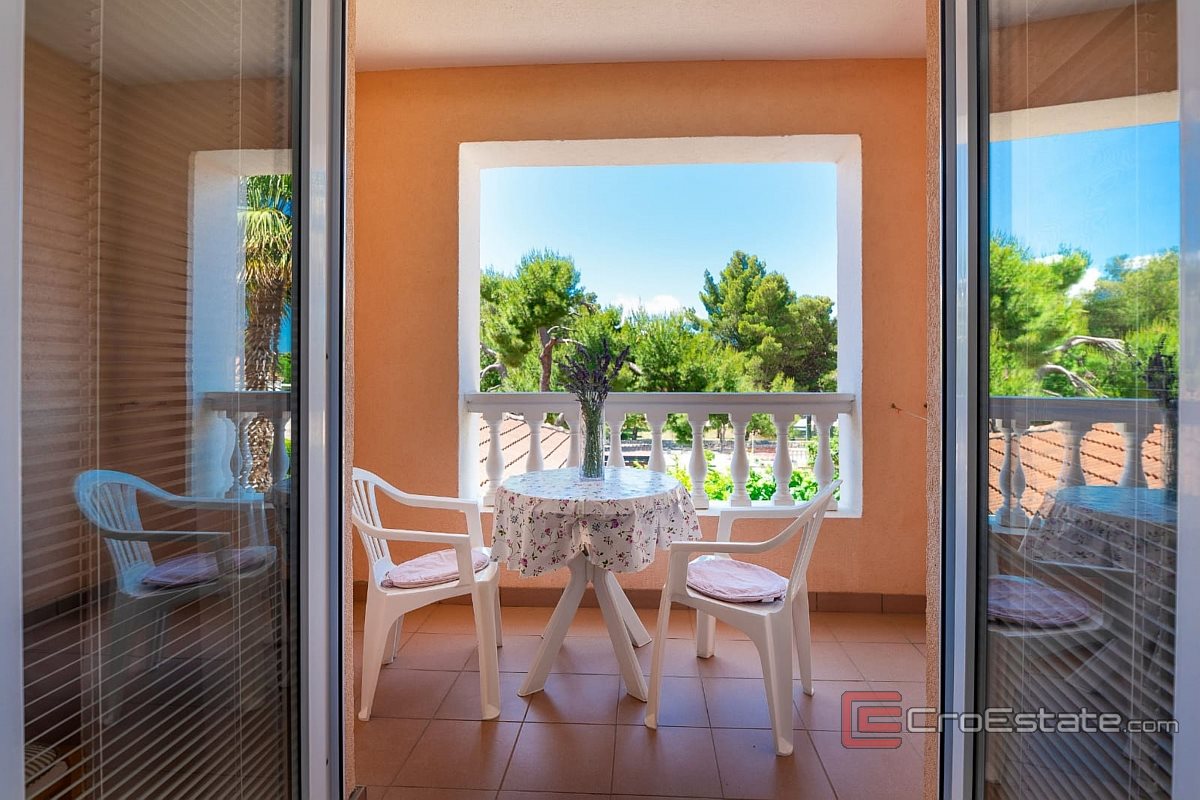 Lägenhetshus beläget i ett utmärkt läge i hjärtat av en liten turistby i centrala Dalmatien. Fastigheten är fördelad på en tomt på 1300 m² och omfattar fem lägenheter med ett sovrum, alla med egen balkong, och en rymlig trerumslägenhet på bottenvåningen, med en total nyttjandeyta på 501 m².