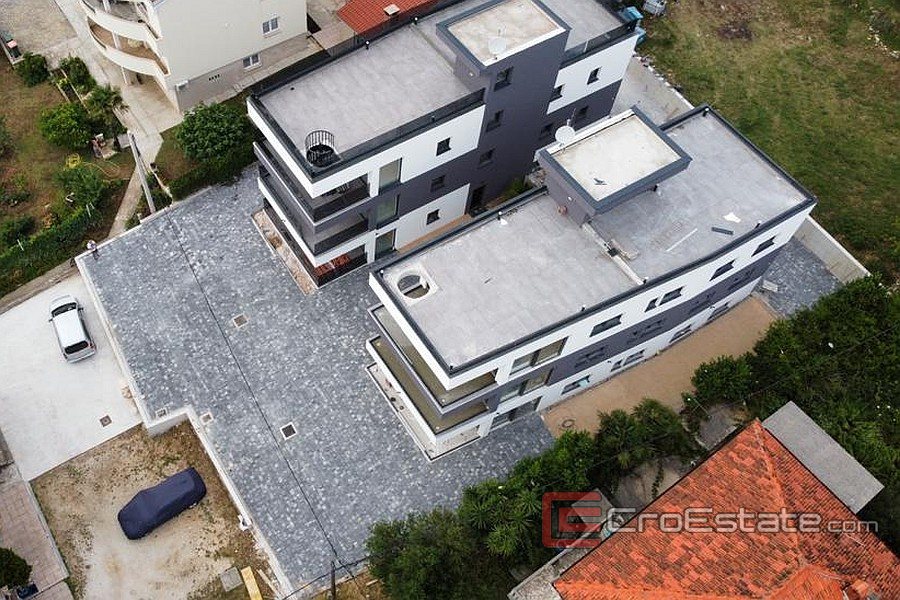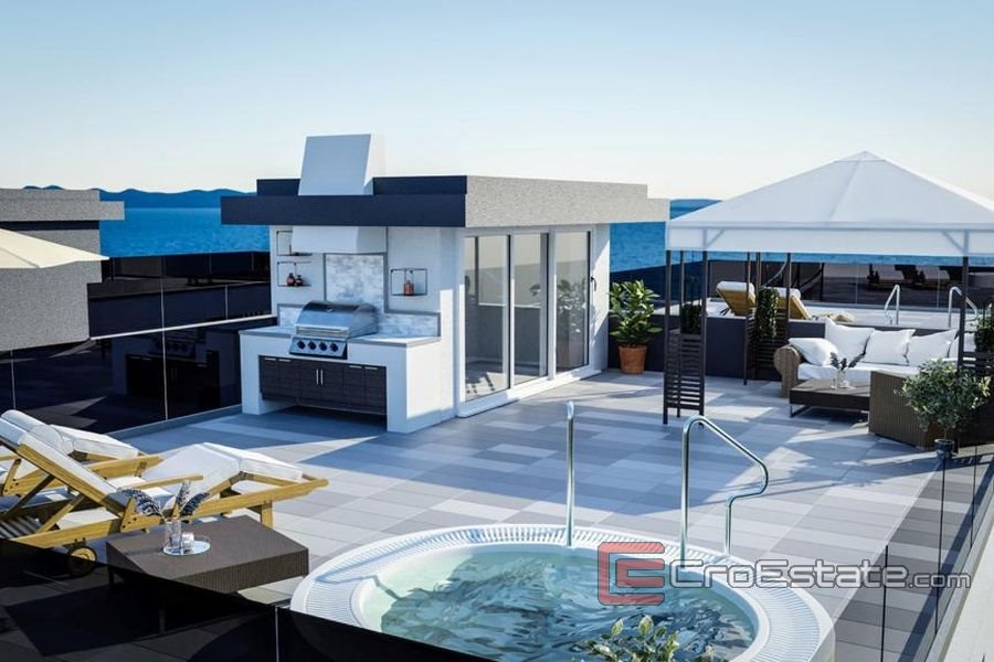Es handelt sich um eine Dreizimmerwohnung mit einer kalkulierten Wohnfläche von 117 m2, die Nutzfläche mit Dachterrasse wird etwas über 200 m2 betragen. Die Wohnung hat ein offenes Raumkonzept und besteht aus drei Schlafzimmern, einer Küche, zwei Bädern, einem Esszimmer und einem Wohnzimmer. In den Gemeinschaftsbereichen sind große Glasschiebewände positioniert, die eine großartige Aussicht vom Grundstück und Zugang zum Balkon bieten. Die Wohnung hat über eine Wendeltreppe vom Balkon Zugang zur Dachterrasse, was ebenfalls ein zusätzliches Merkmal der Immobilie ist. Es ist eine Terrasse mit über 70 m2 mit allen notwendigen Wasser-, Abwasser- und Strominstallationen. Die Terrasse verfügt über eine Sommerküche, eine Sommerdusche und einen Whirlpool.