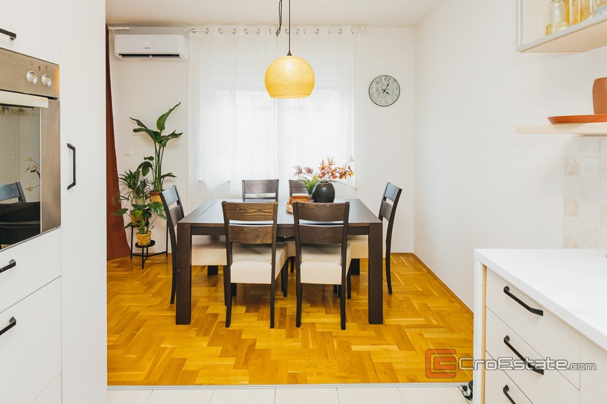 Die Wohnung ist nach Norden, Osten und Westen ausgerichtet, luftig und hell und bietet einen Blick ins Grüne. Sie liegt in einer ruhigen Straße, 600 Meter von Ilica und nur wenige Gehminuten von öffentlichen Verkehrsmitteln entfernt. Schulen, Gesundheitseinrichtungen, Geschäfte, eine Apotheke und weitere wichtige Einrichtungen befinden sich in unmittelbarer Nähe.